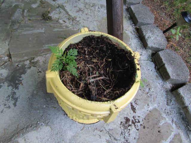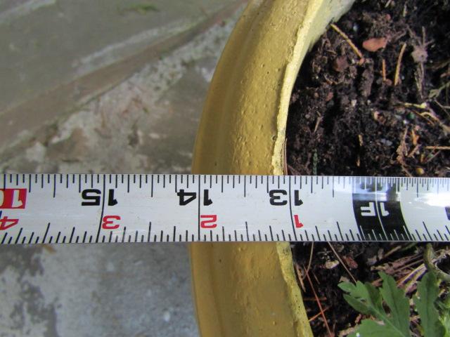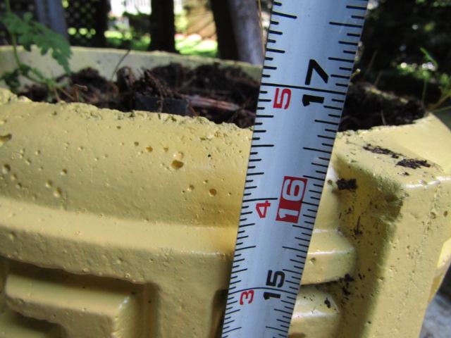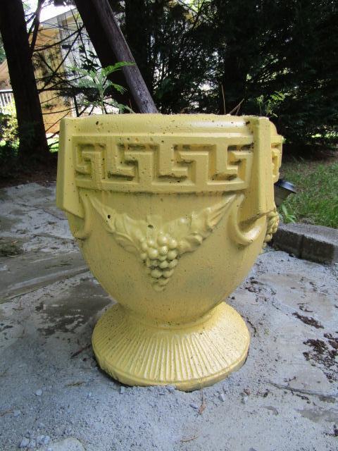 Yellow Painted Concrete Planter- 14" Across, 16 3/4" Tall