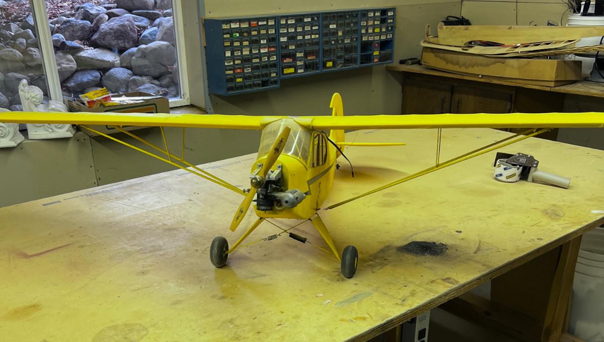 Yellow Piper Cub with Engine Plane