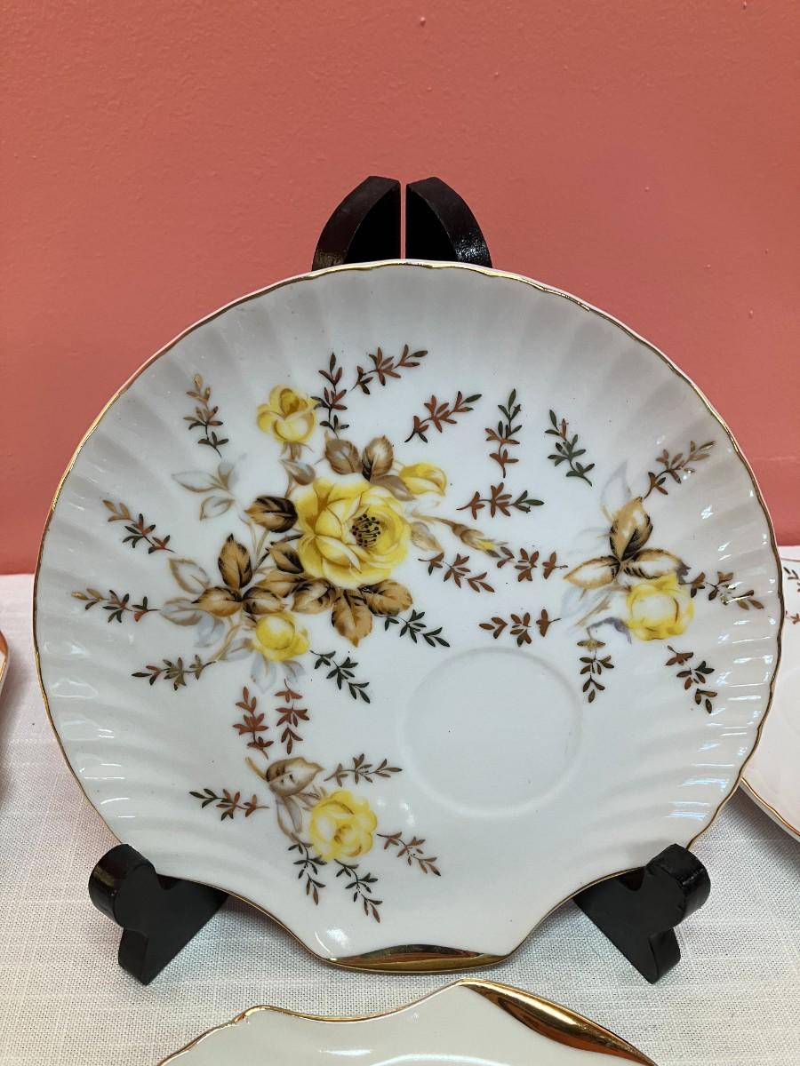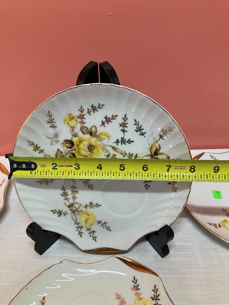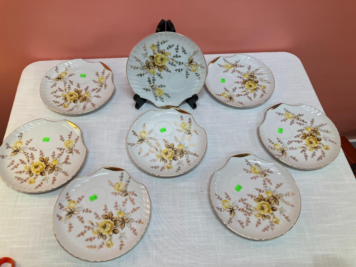 Set of 8 vintage yellow rose snack plates with beautiful floral design