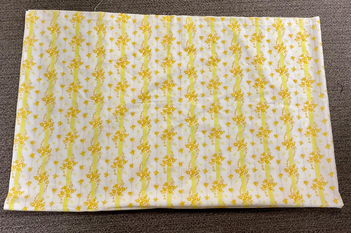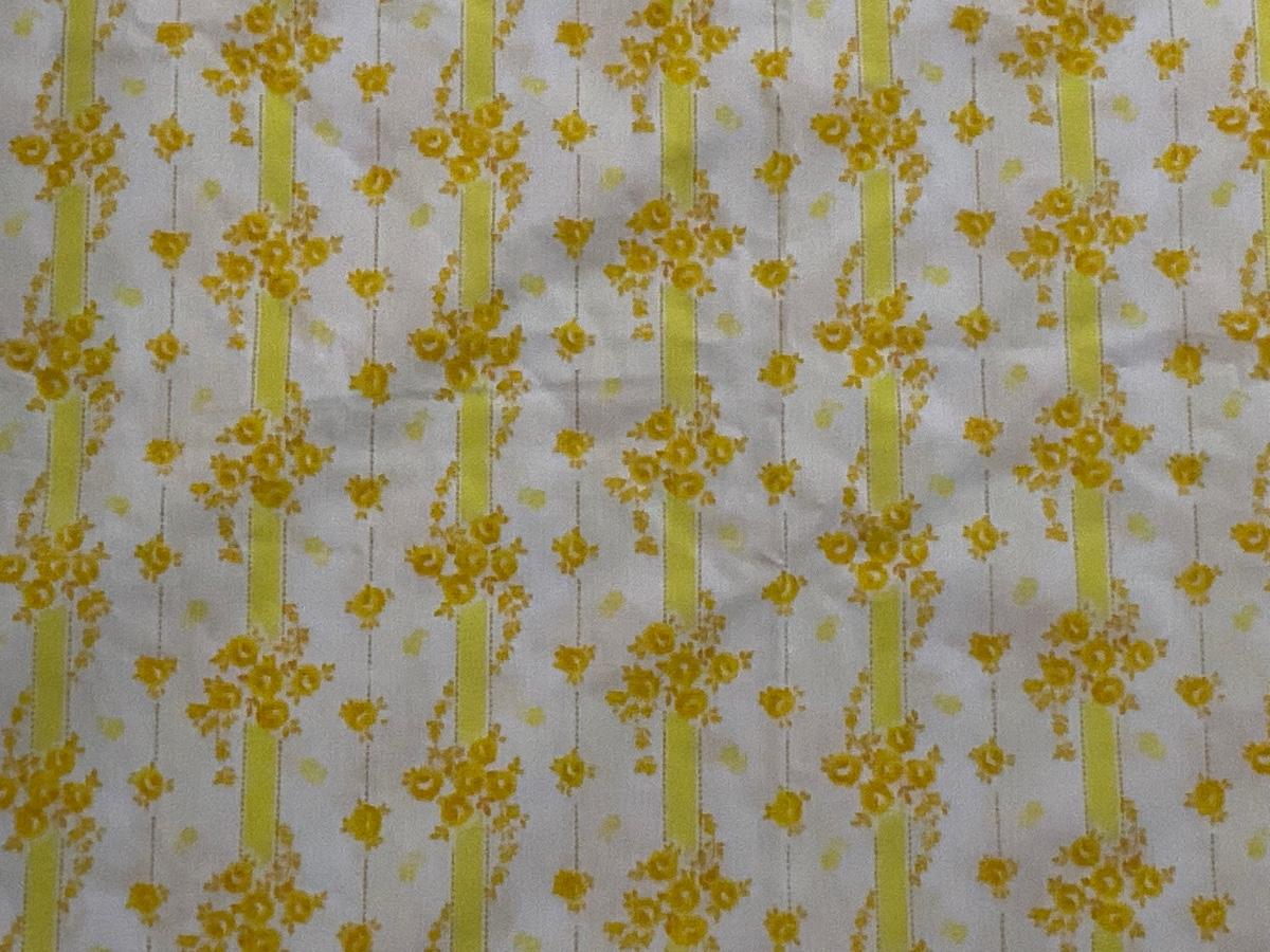 Yellow Roses on stripes material remnant 36” x 46” , one edge hemmed - see photos