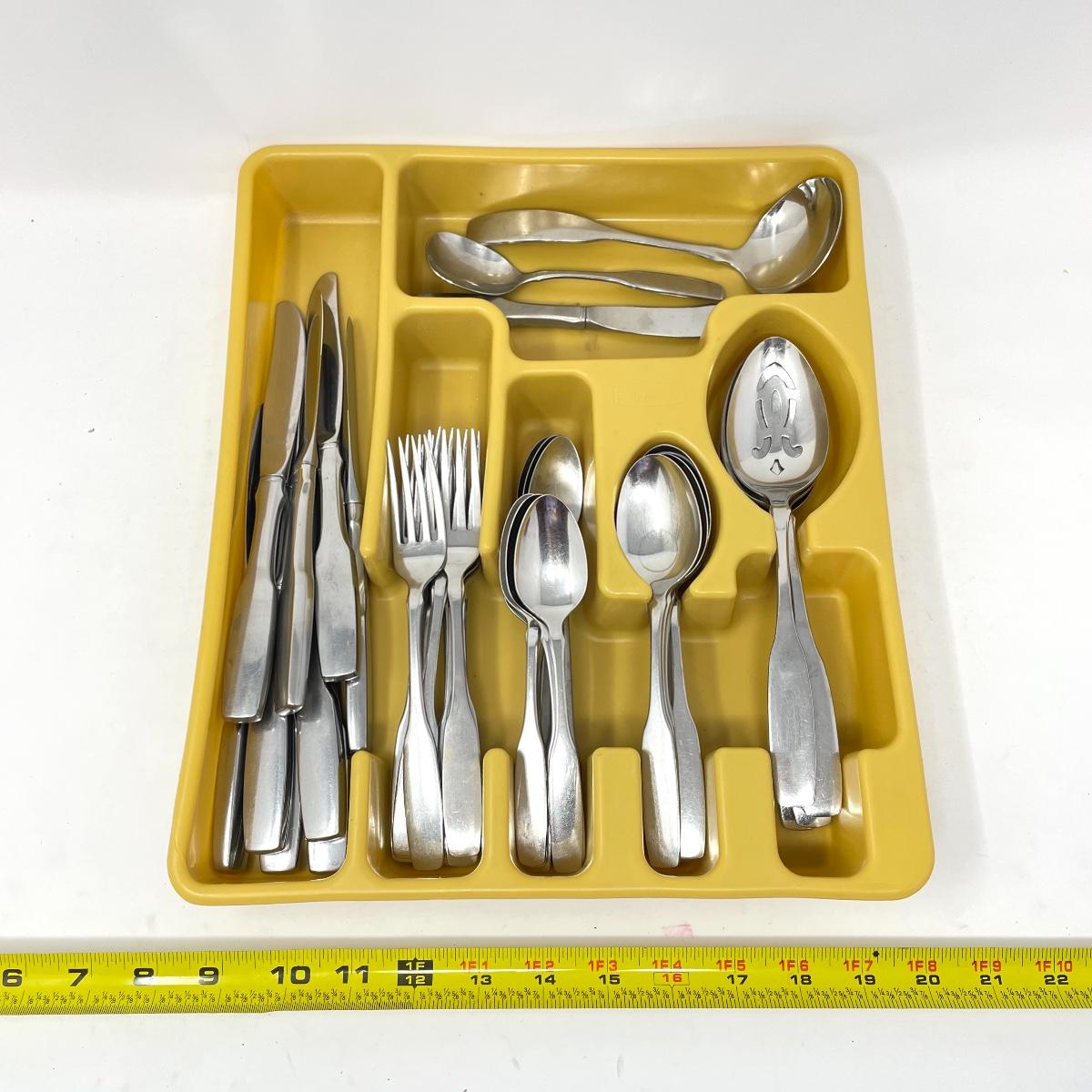 YELLOW SILVERWARE ORGANIZER AND 50PC SILVERWARE