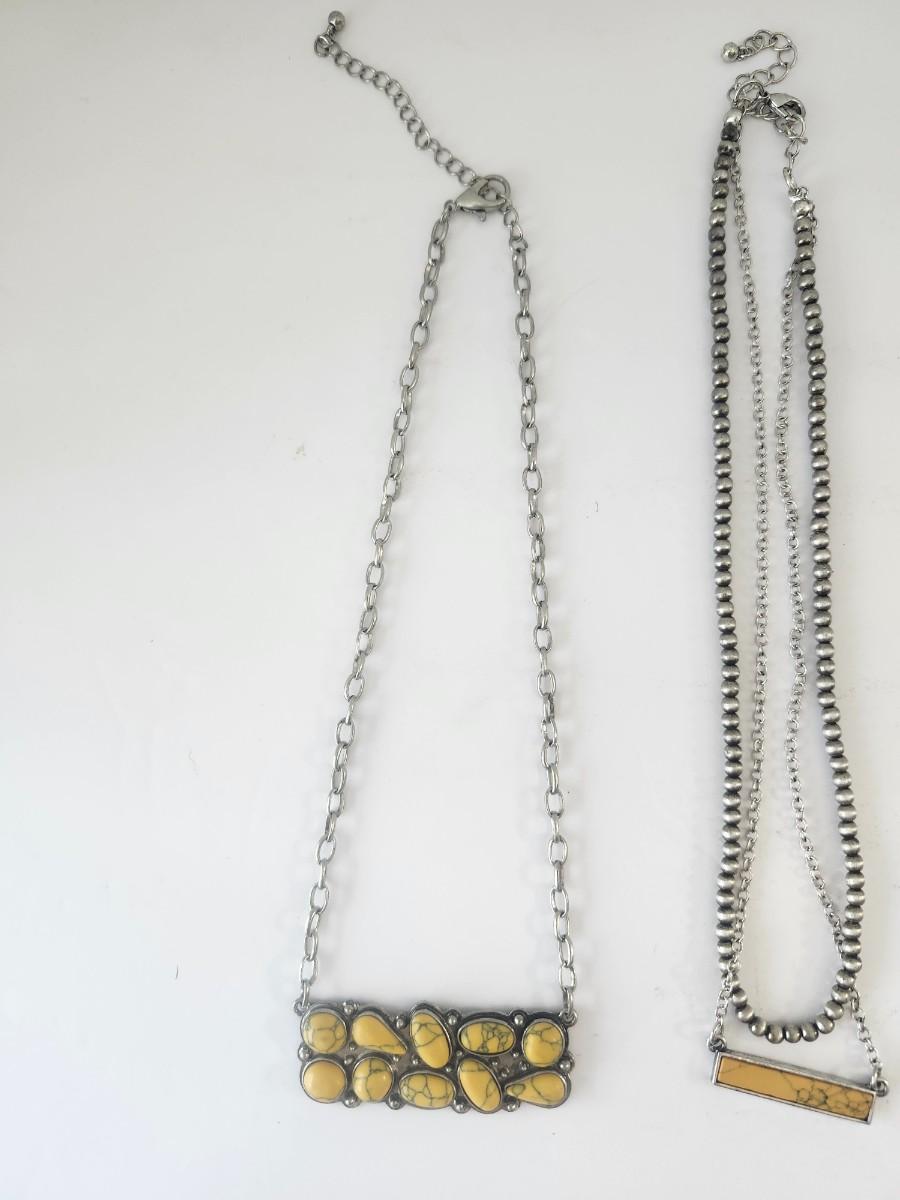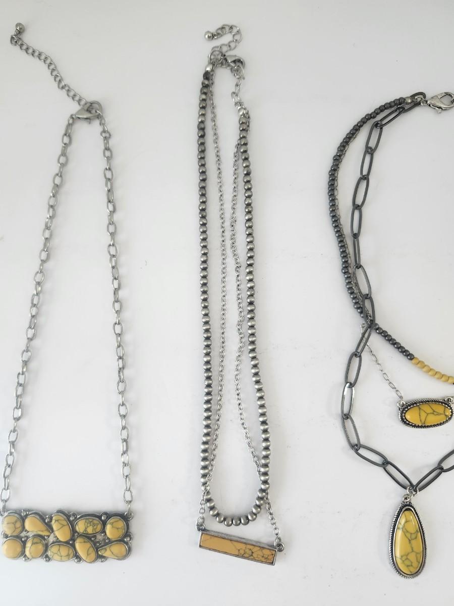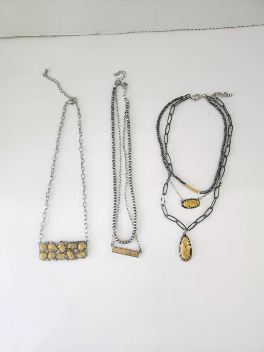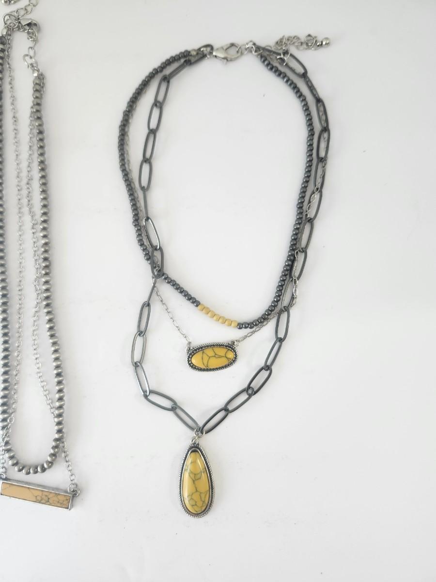 Yellow Stone Pendant Necklace Trio Silver Tone Mixed Chain Styles Boho Southwestern Look