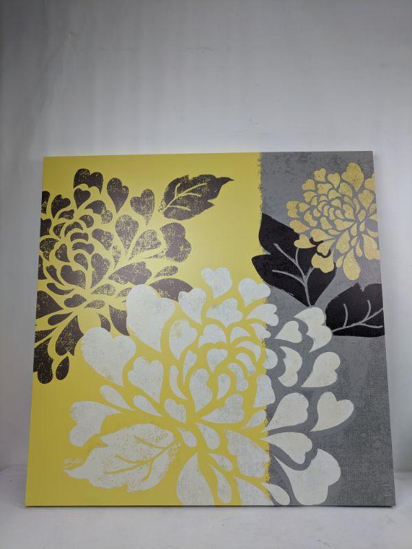 Yellow/Gray Flower Canvas Picture 3' x 3'