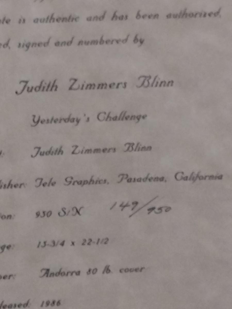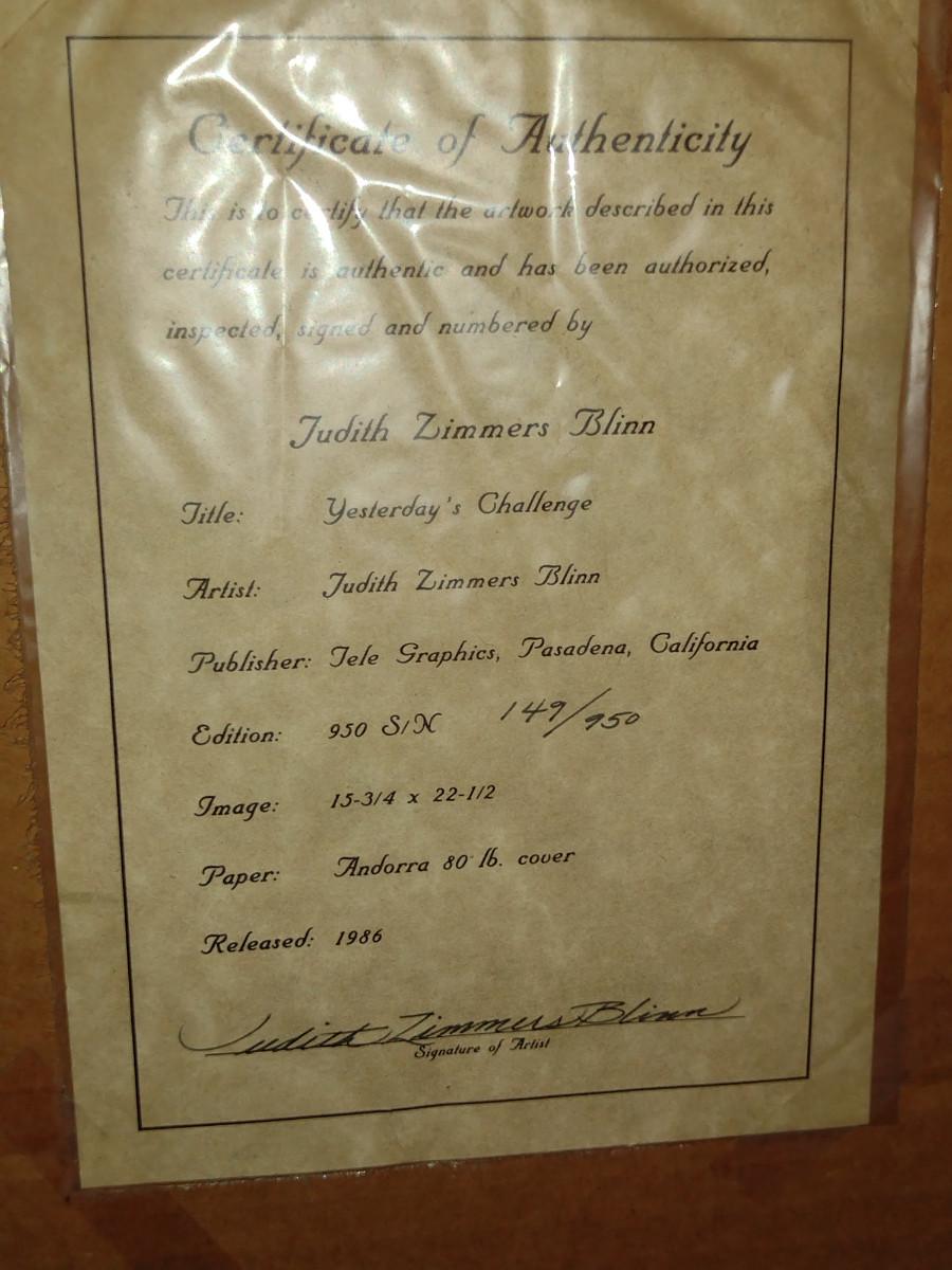 'Yesterday's Challenge' by Judith Zimmers Blinn Signed and Numbered Print Framed Under Glass