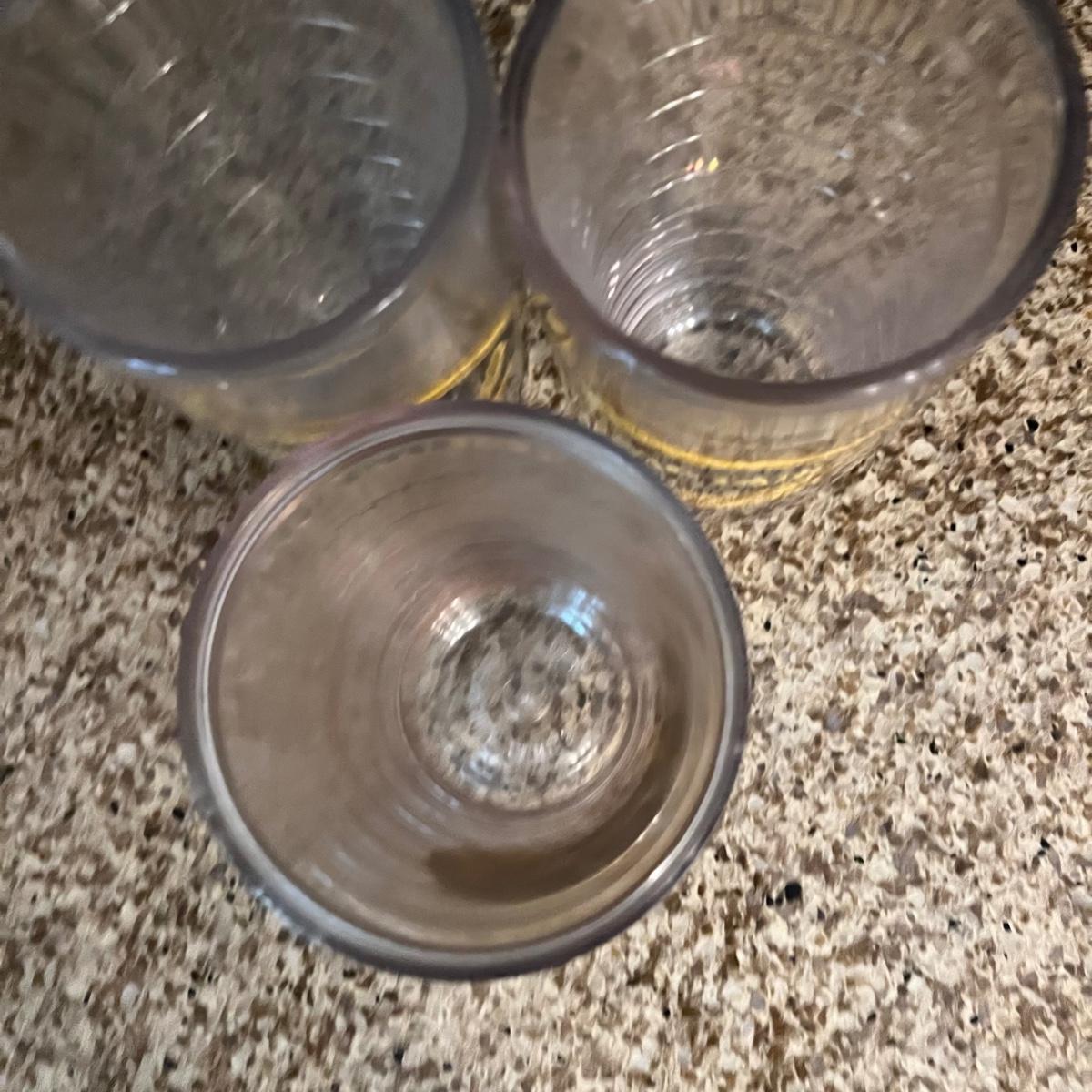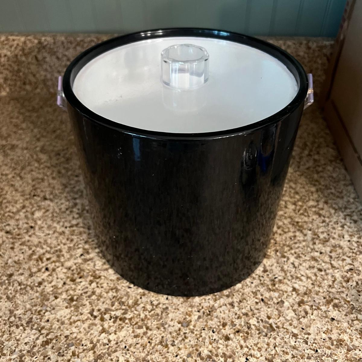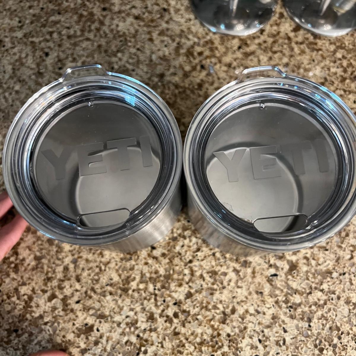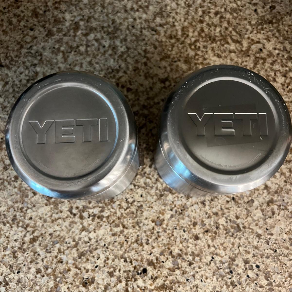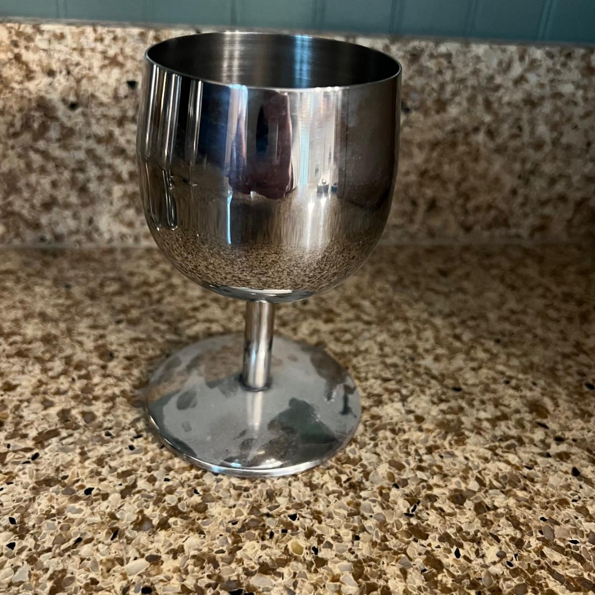 Two insulated Yeti cups each 3.5”D x 4.25”H. An ice bucket 7.6”D x 7”H. Sixteen nautical themed insulated cups. Six metal wine cups measure 2.5”D x 4.5”H.