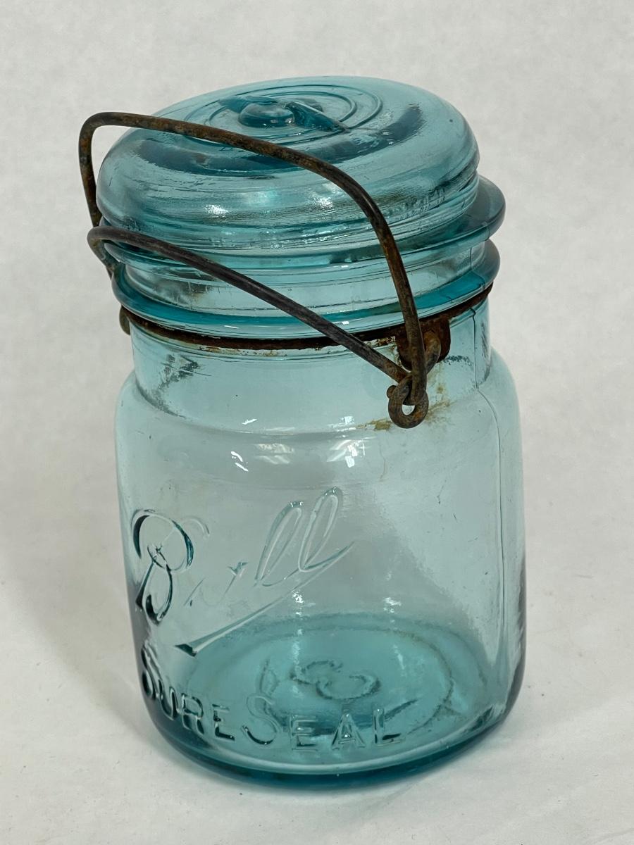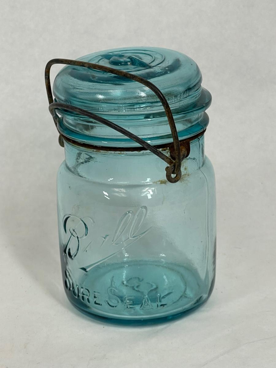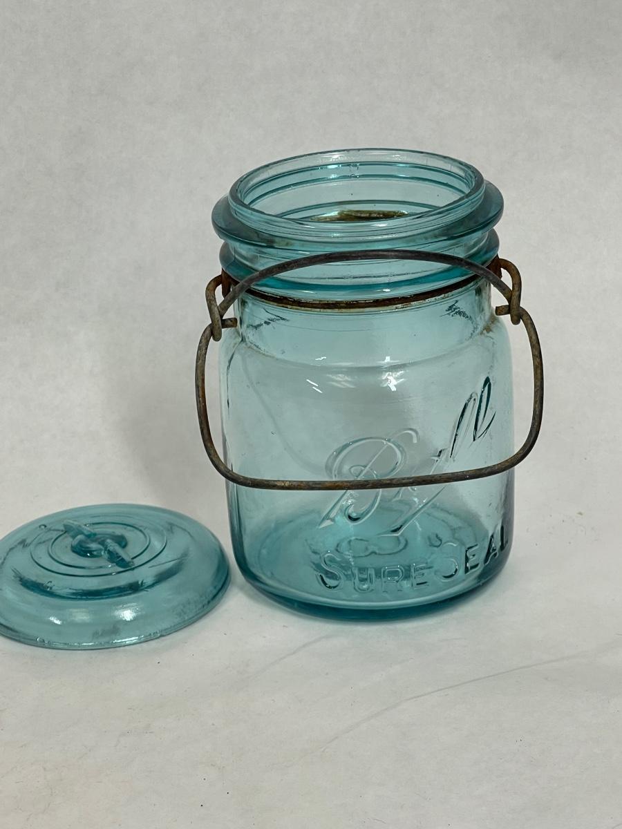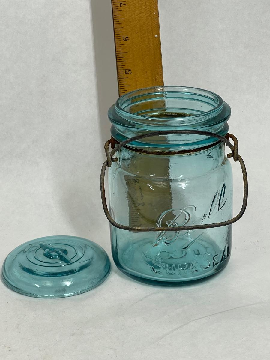 This has a color-matched blu glass lid with it, but we don’t think it fits this jar
