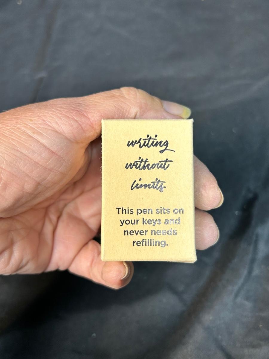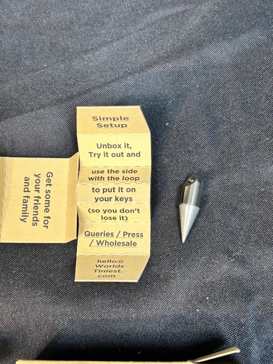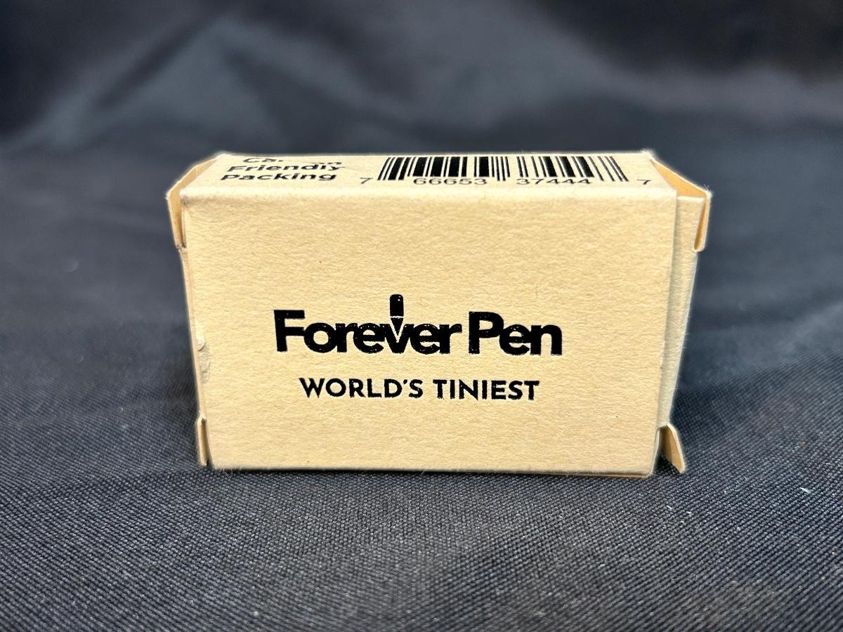 Forever Pen World's Tiniest Pen Keychain with Box. In good condition. Not sure exactly what it is made of but it does write. Under 1" and can be put on any keychain.