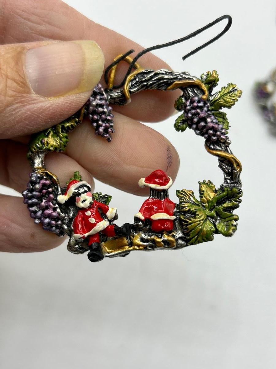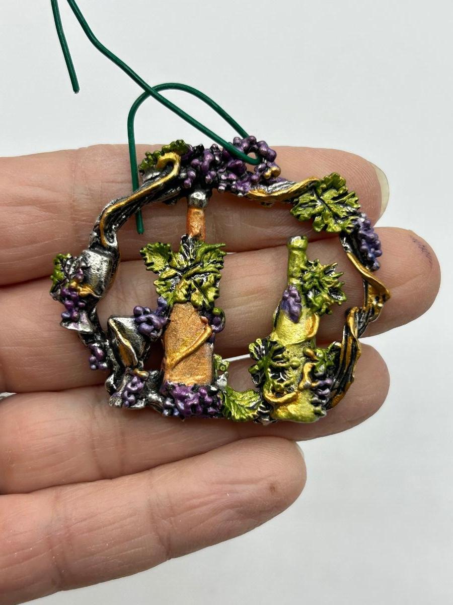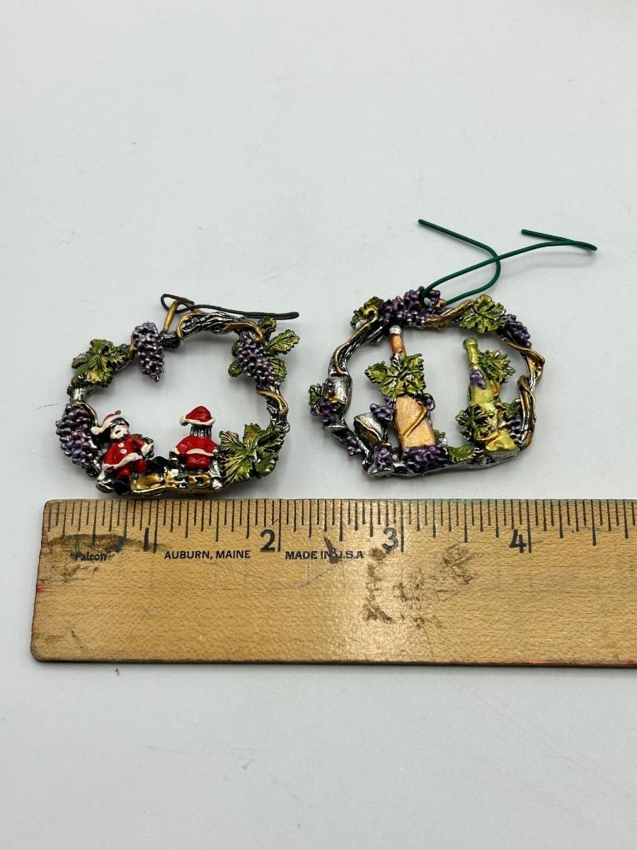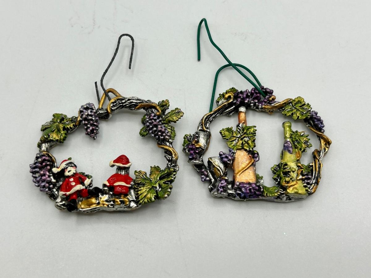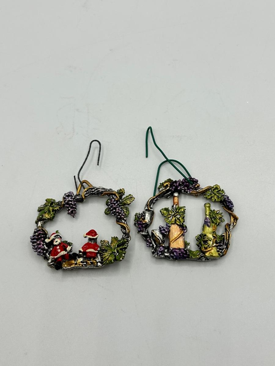 Pair of Grapevine Themed Christmas Holiday Hanging Tree Ornaments Painted Metal. In good condition.