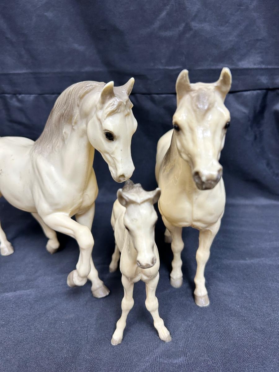 Vintage White Hartland Plastics Horse Family Model Toy Sire Stallion Mare Colt Foal