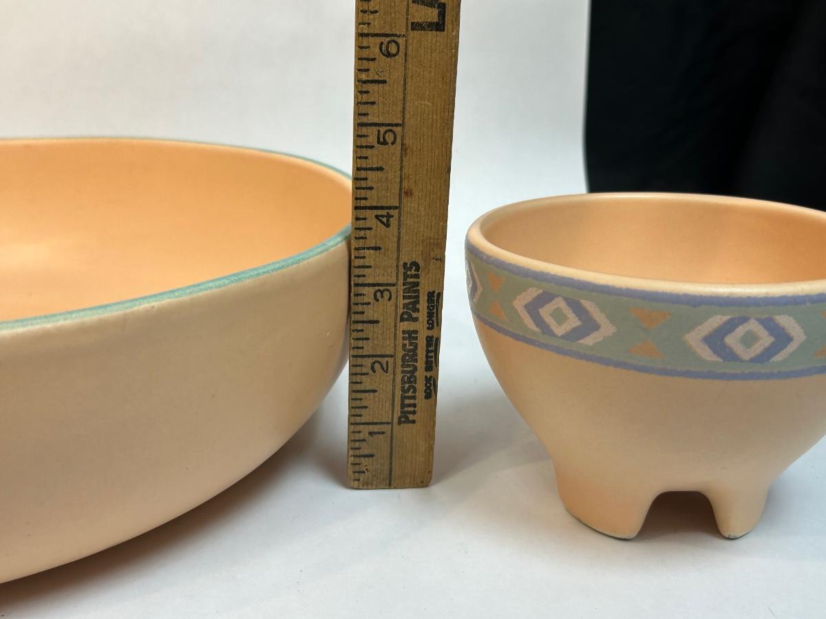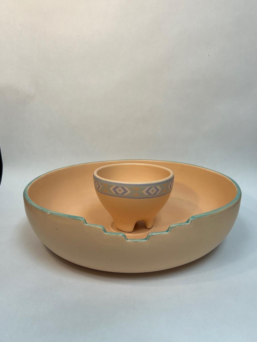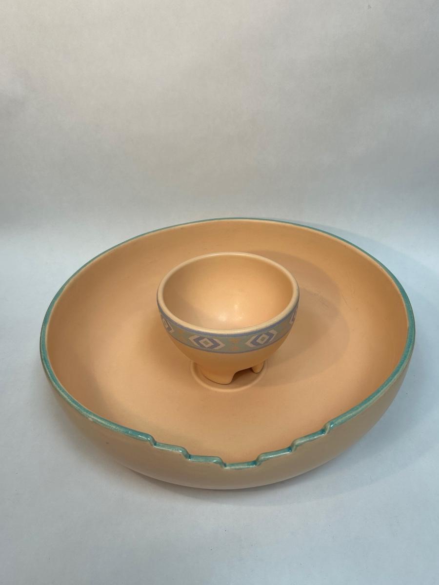 Treasure Craft Pottery Vintage Southwestern Style Pattern Chip and Dip Bowl Set