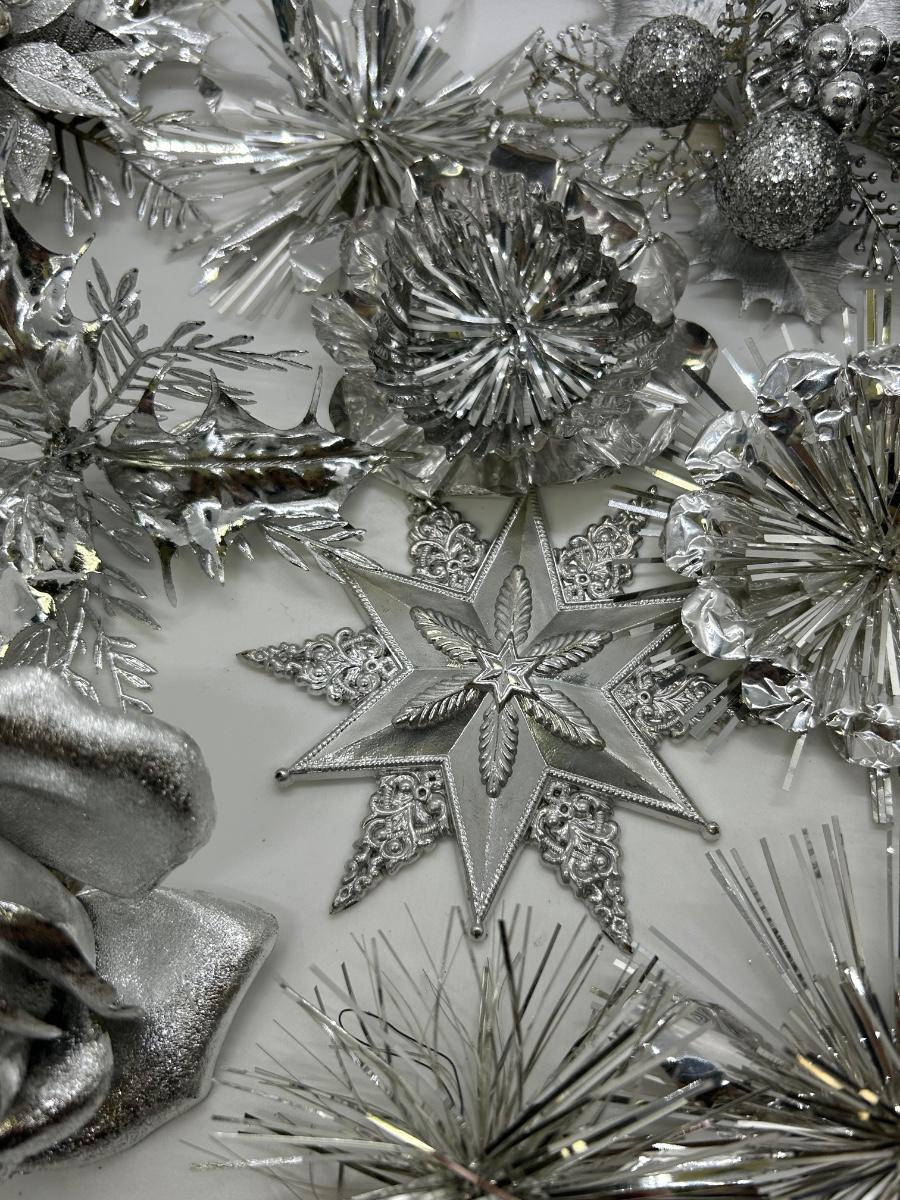 Vintage Silver Foil Metallic Christmas Holiday Decoration Ornaments Western Germany