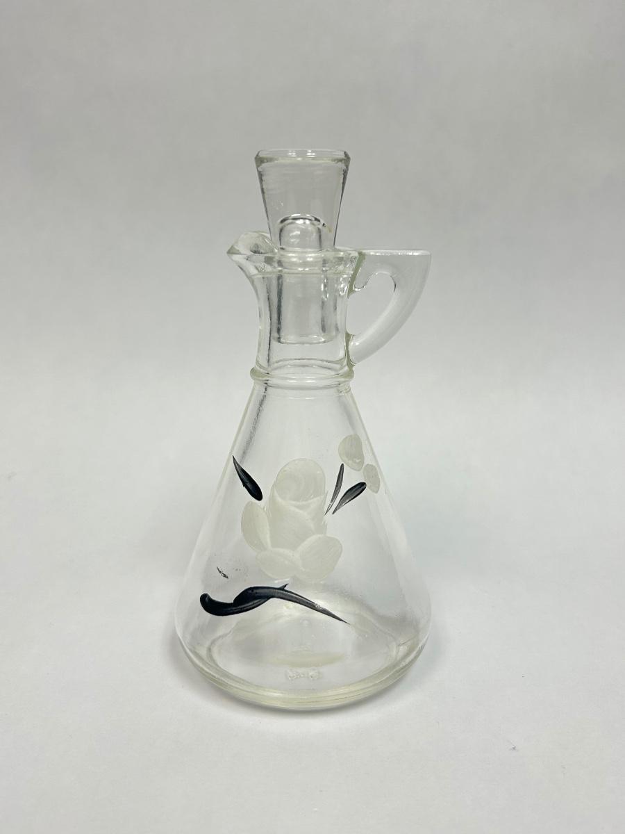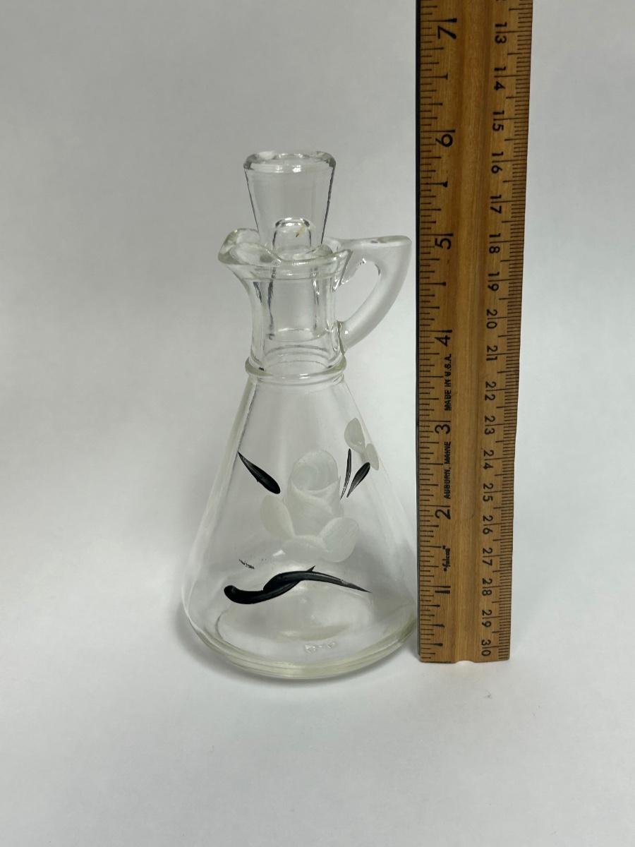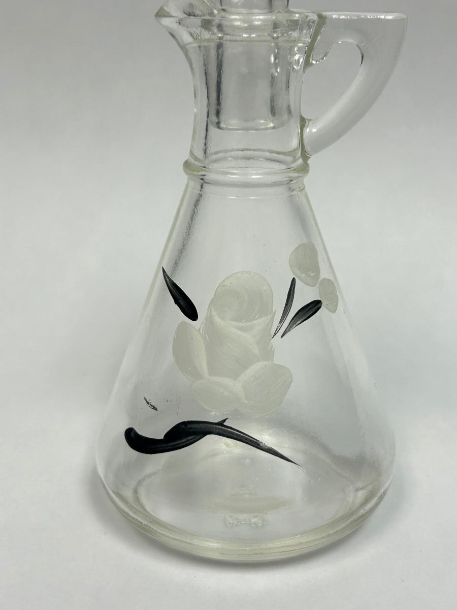 Vintage Cruet Oil Vinegar Pitcher Carafe with Hand Painted Flower Rose Bud. In good vintage condition. No chips or cracks.
