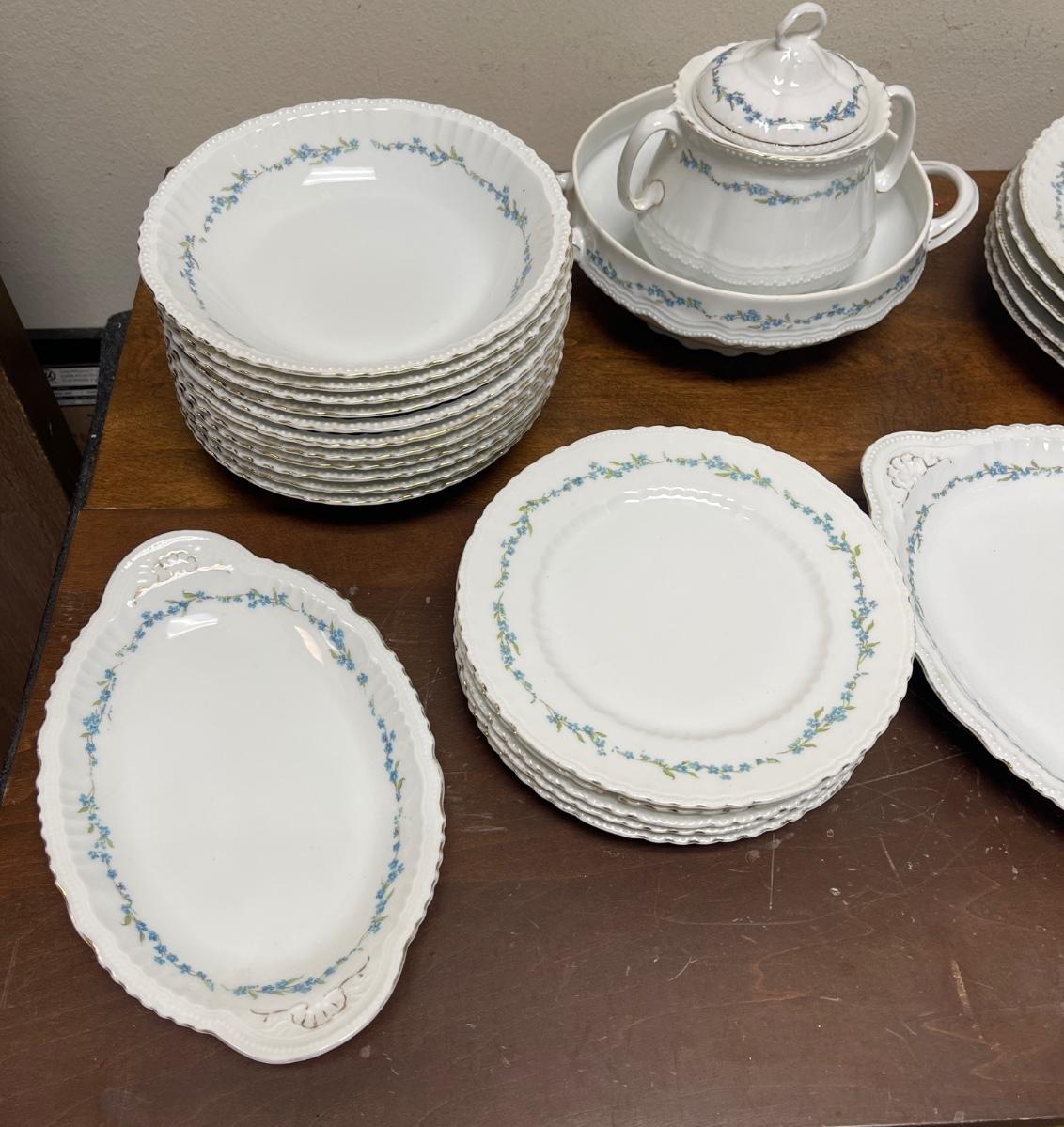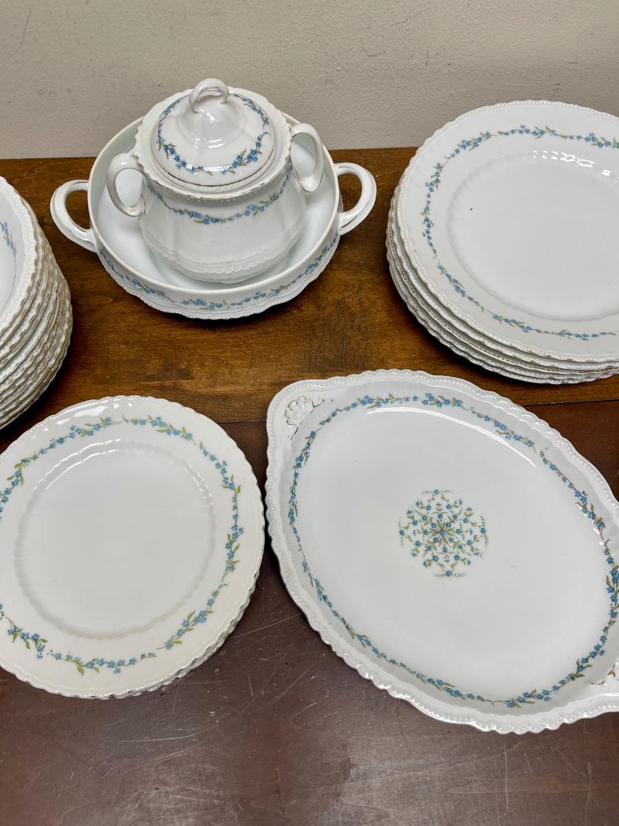 LS&S Carksbad Austria china dinnerware pattern 3248 vintage scalloped blue flower border