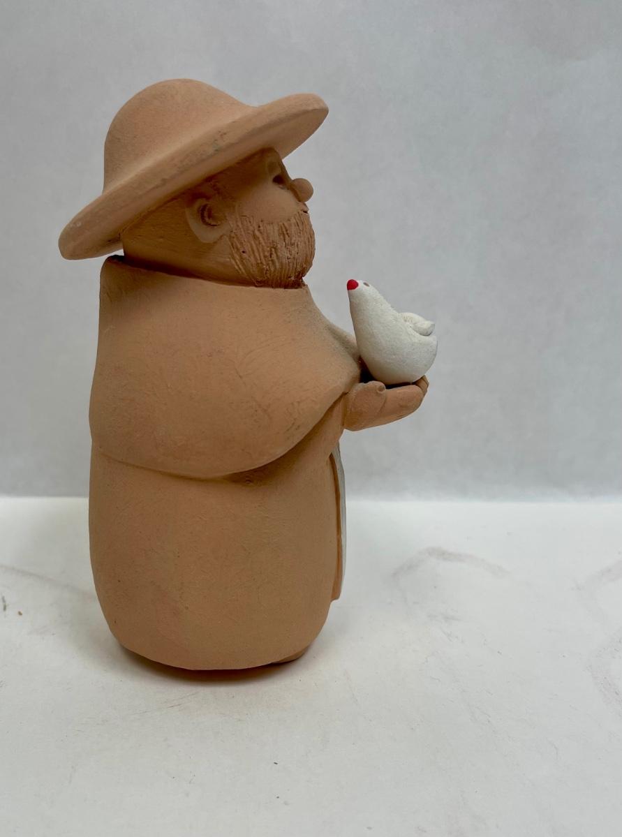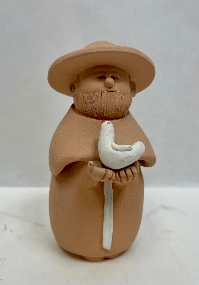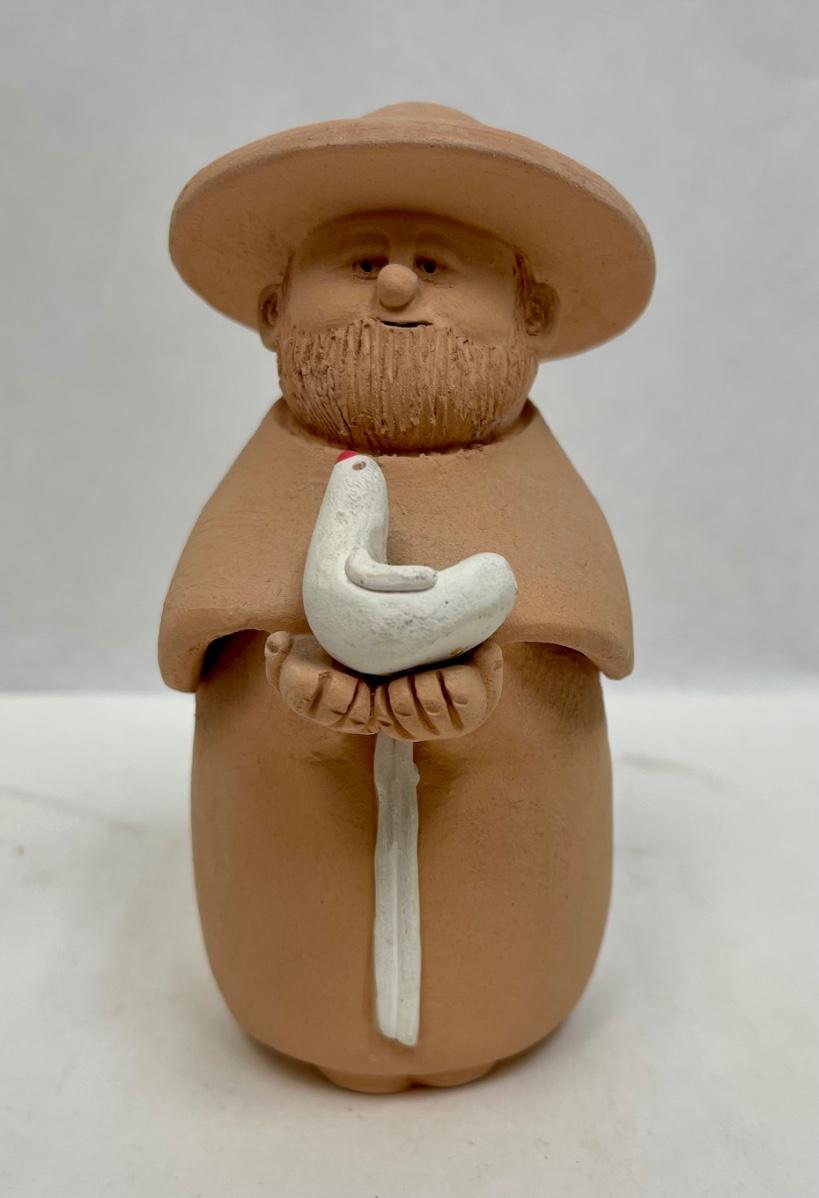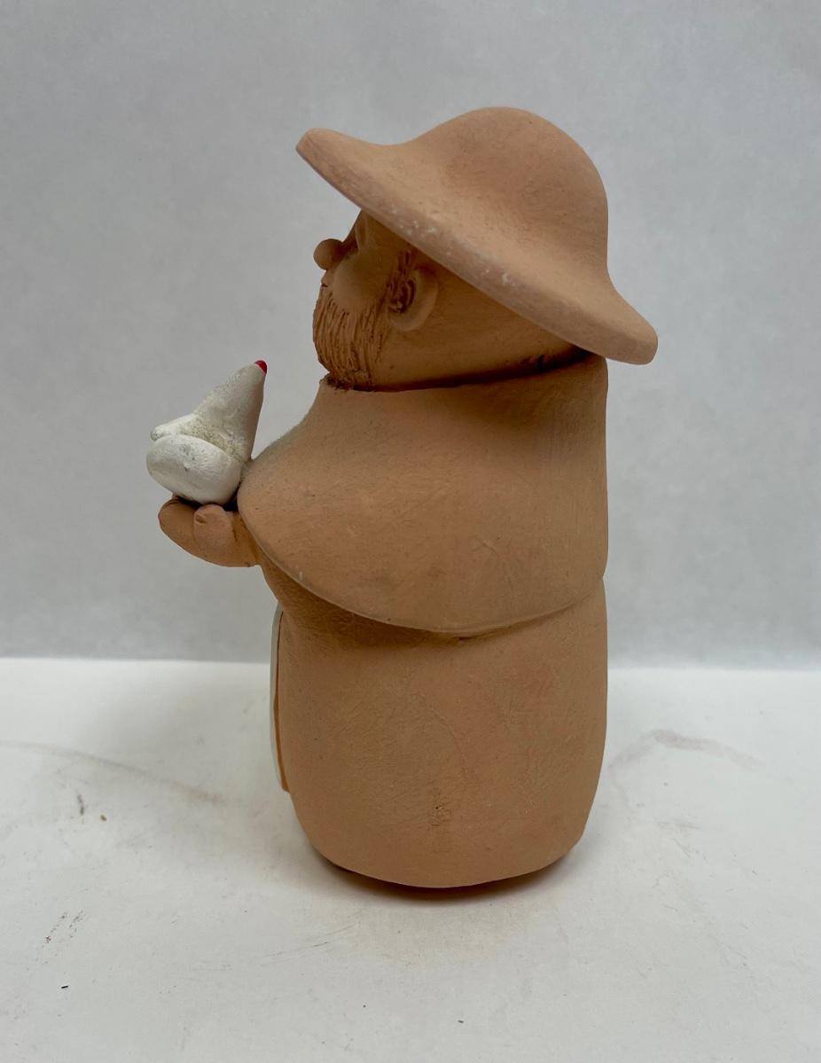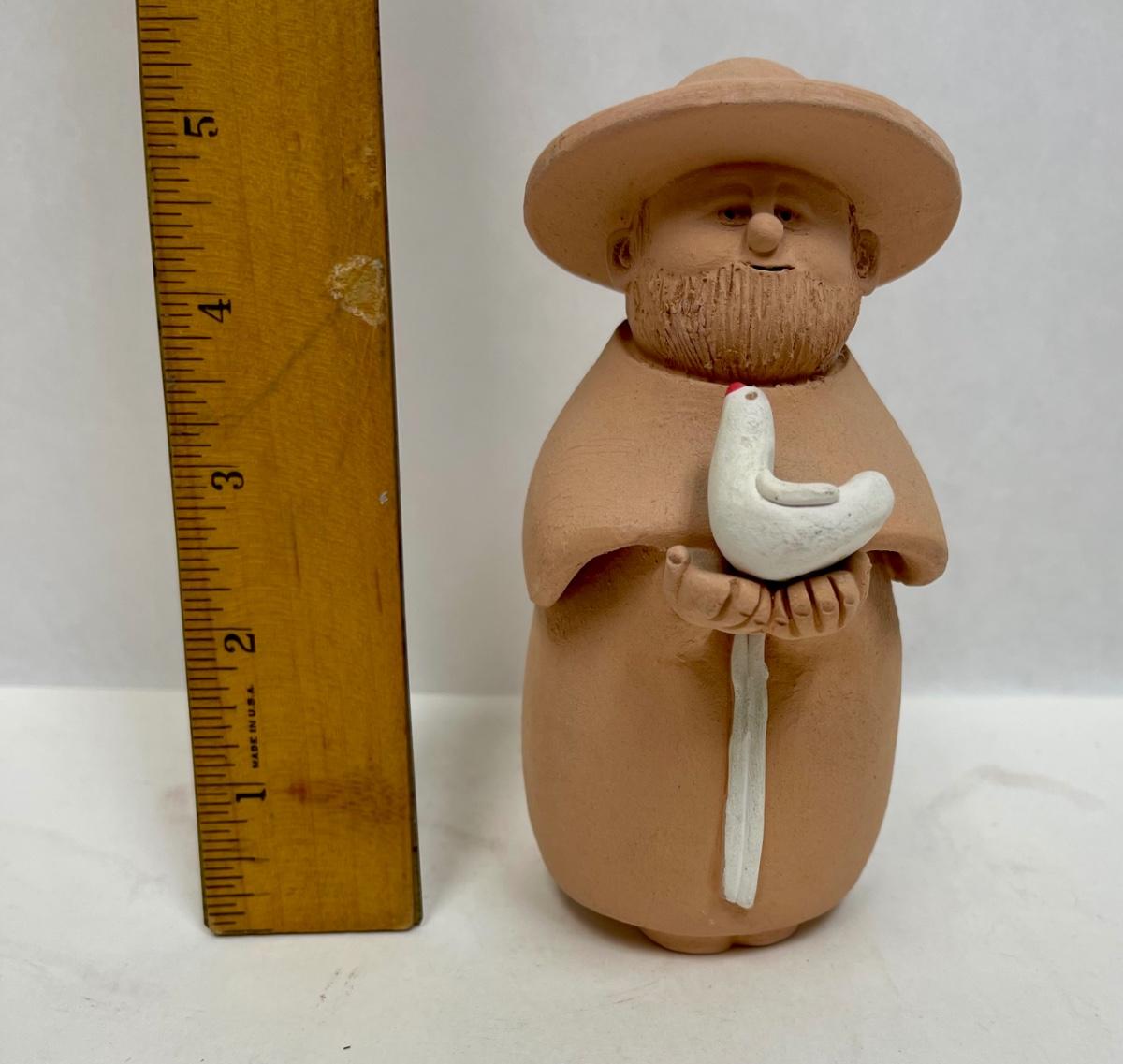 Made in Chile signed Terracotta Monk Figurine holding Dove Swallow white bird