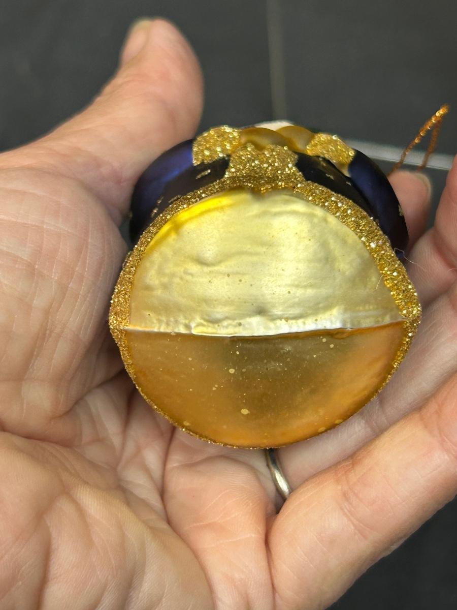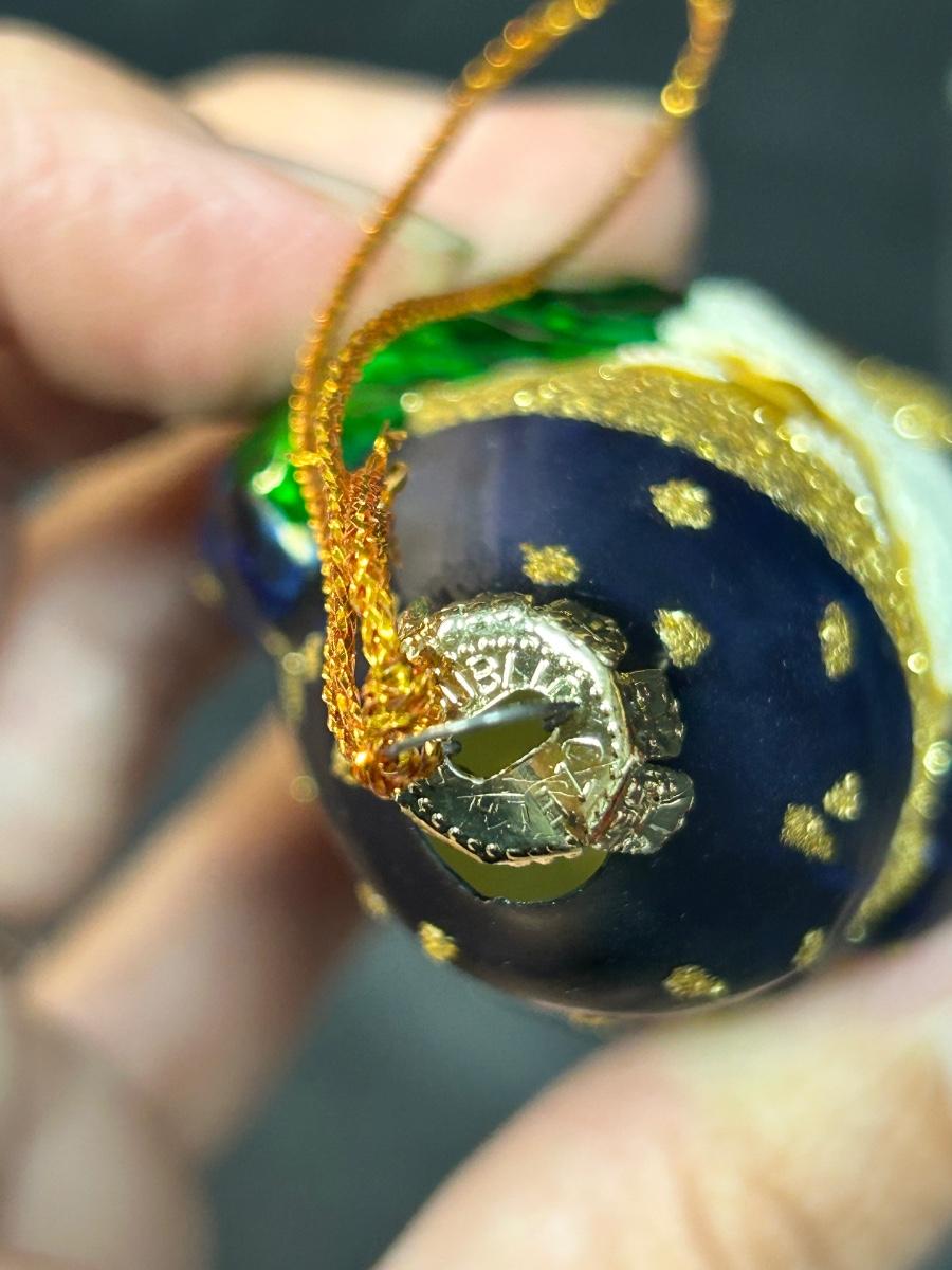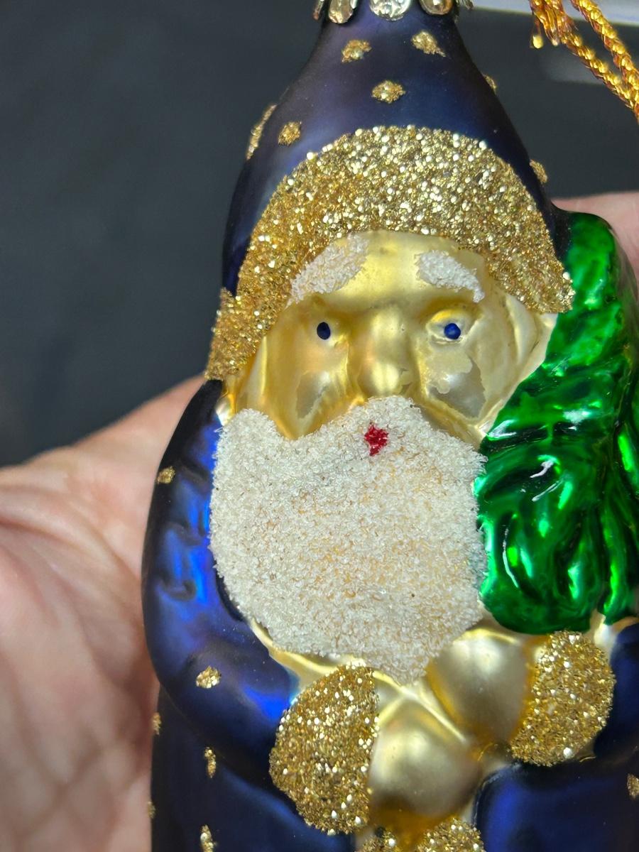 Vintage Blue and Gold Santa Claus St. Nick Blown Glass Christmas Holiday Tree Ornament Czech Republic