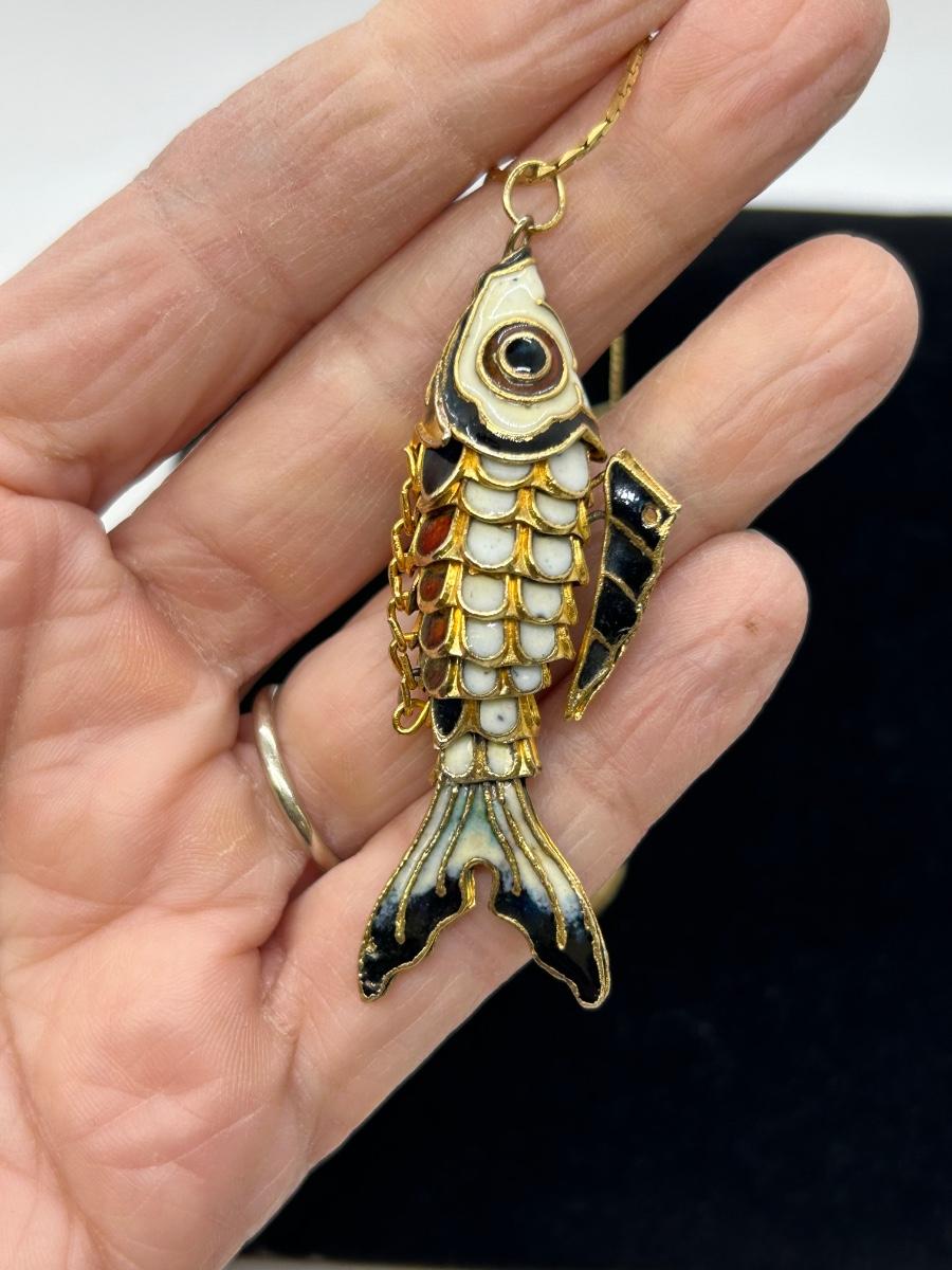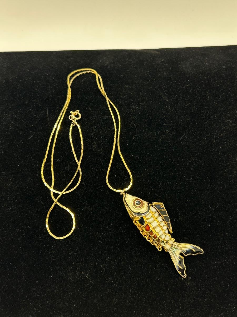 Gold Tone Articulated Koi Fish Pendant Necklace