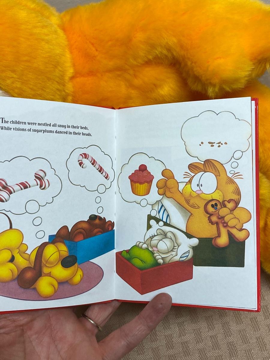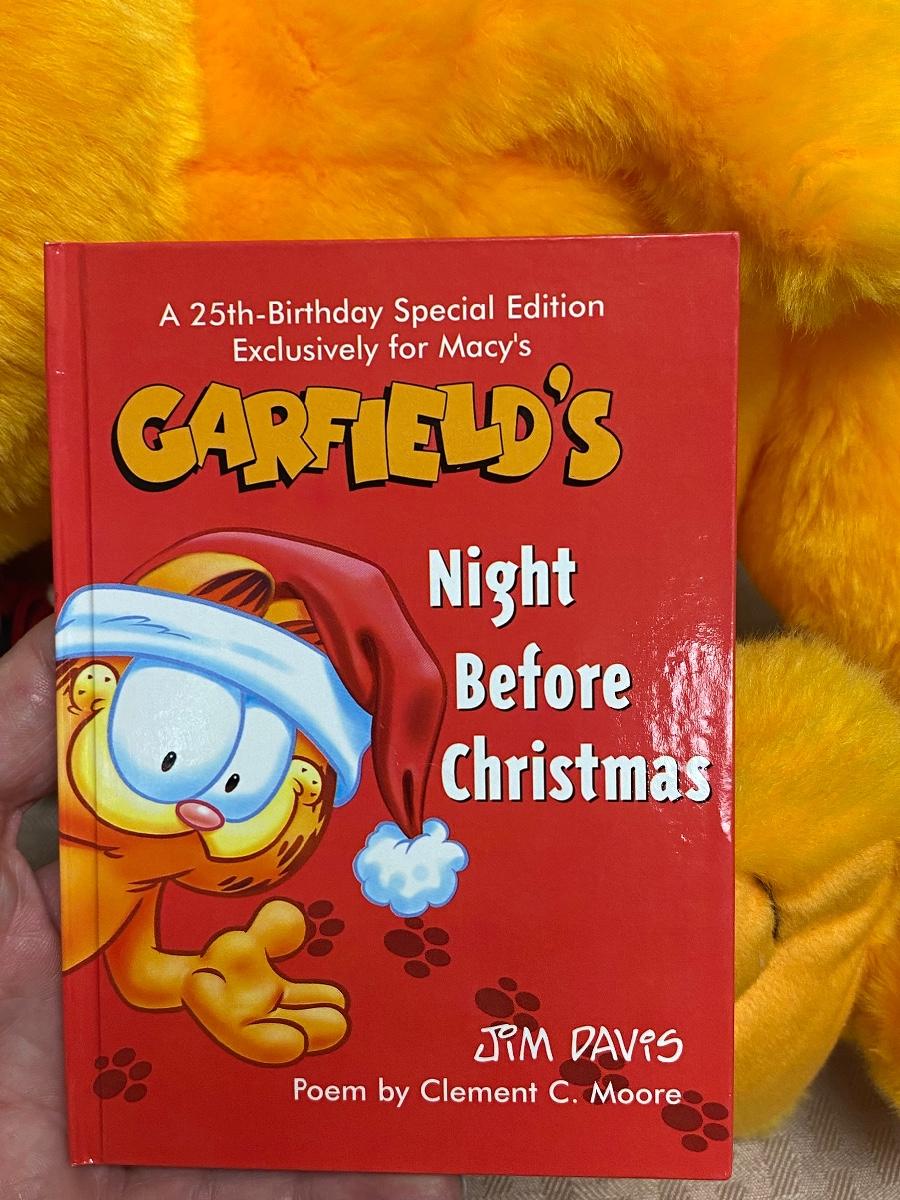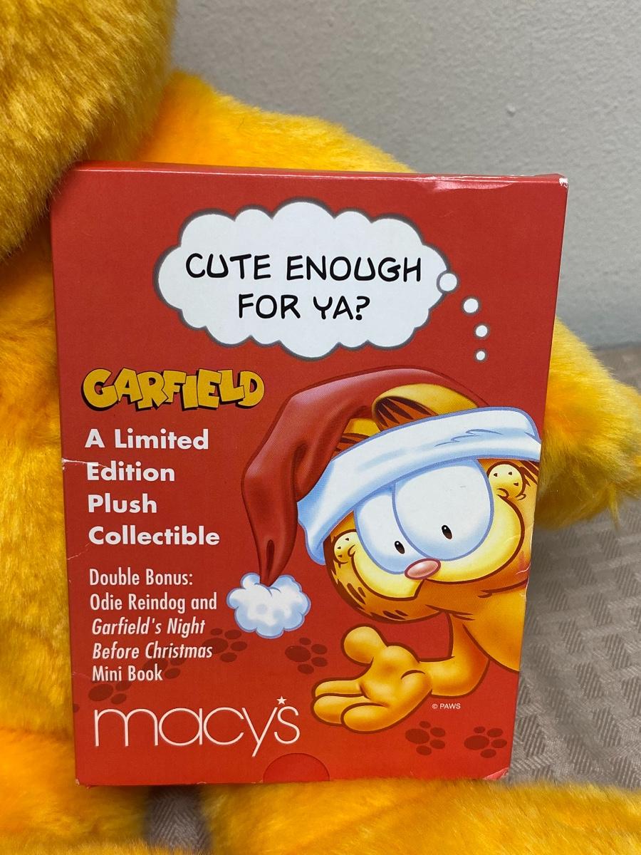 Limited Edition Garfield Plush Holiday Christmas Stuffed Animal. Presented by Macy's. Comes with story book. Good condition.