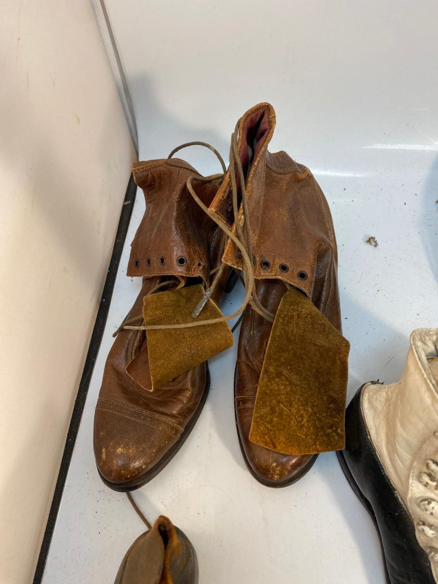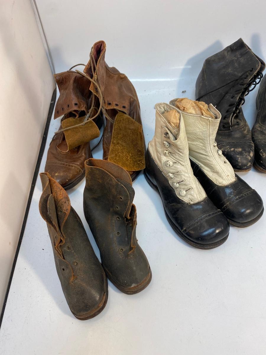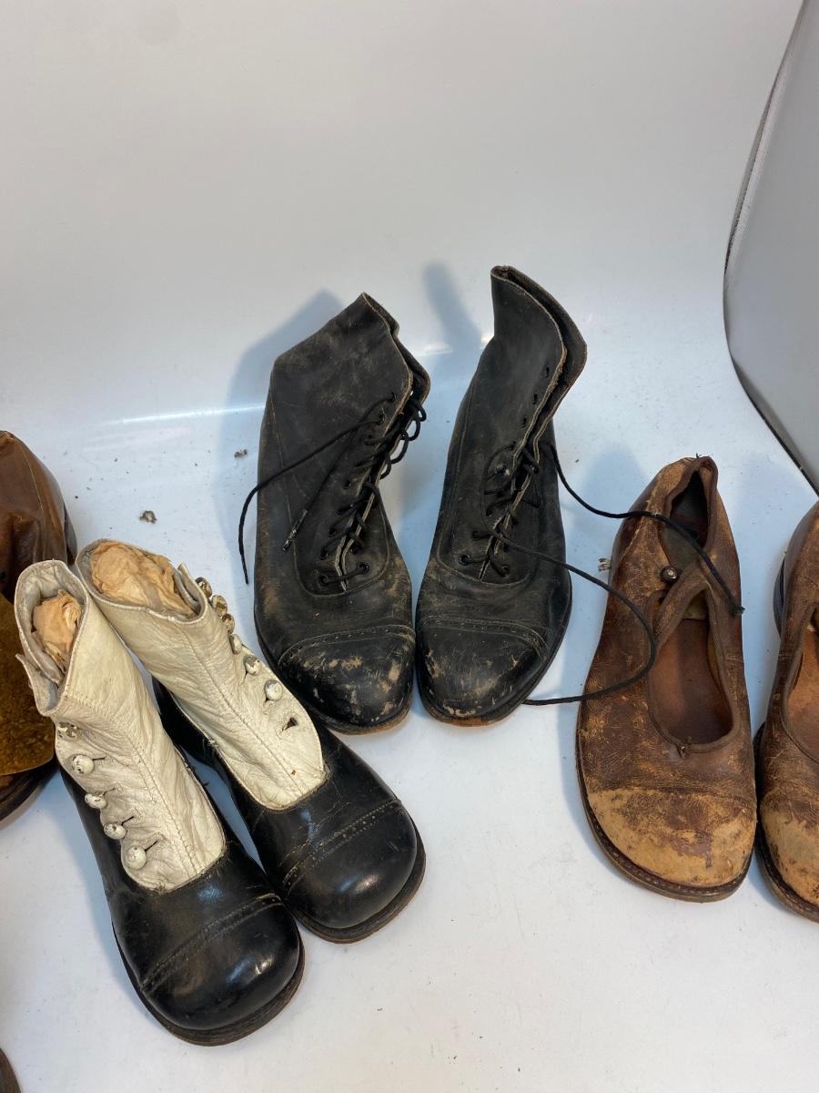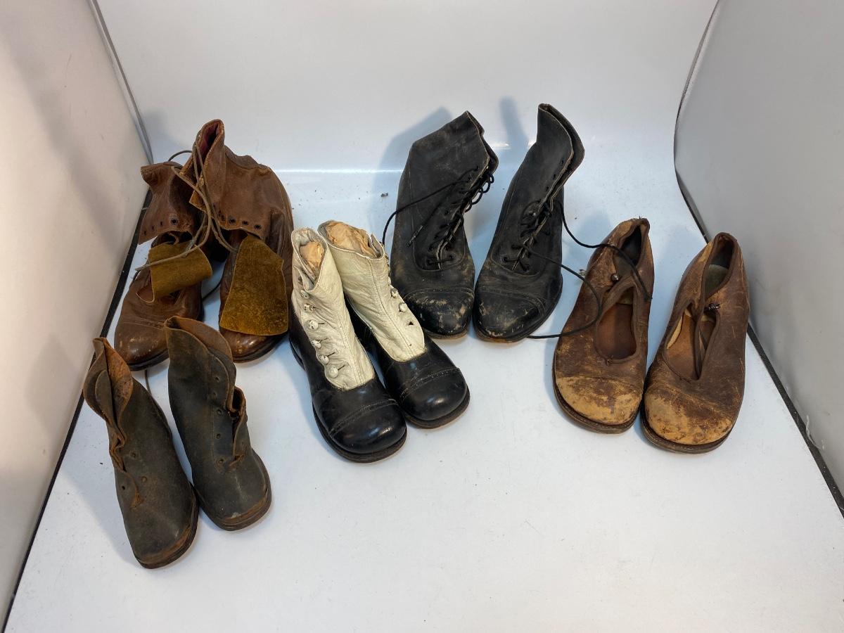 Victorian Antique Lot of Kids Youth Shoes Boots. Various styles and sizes. All are worn. Good for display or dress up. No sizes found, but they are small child/youth.