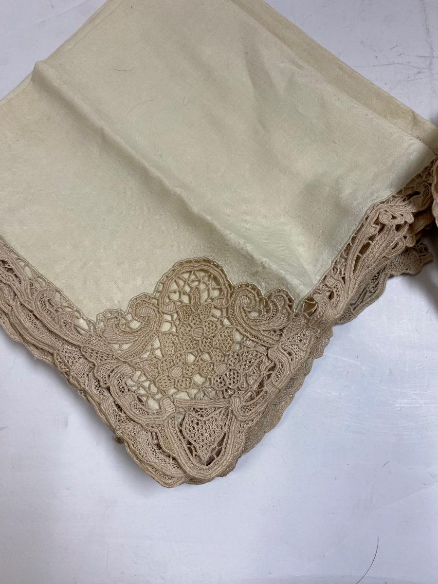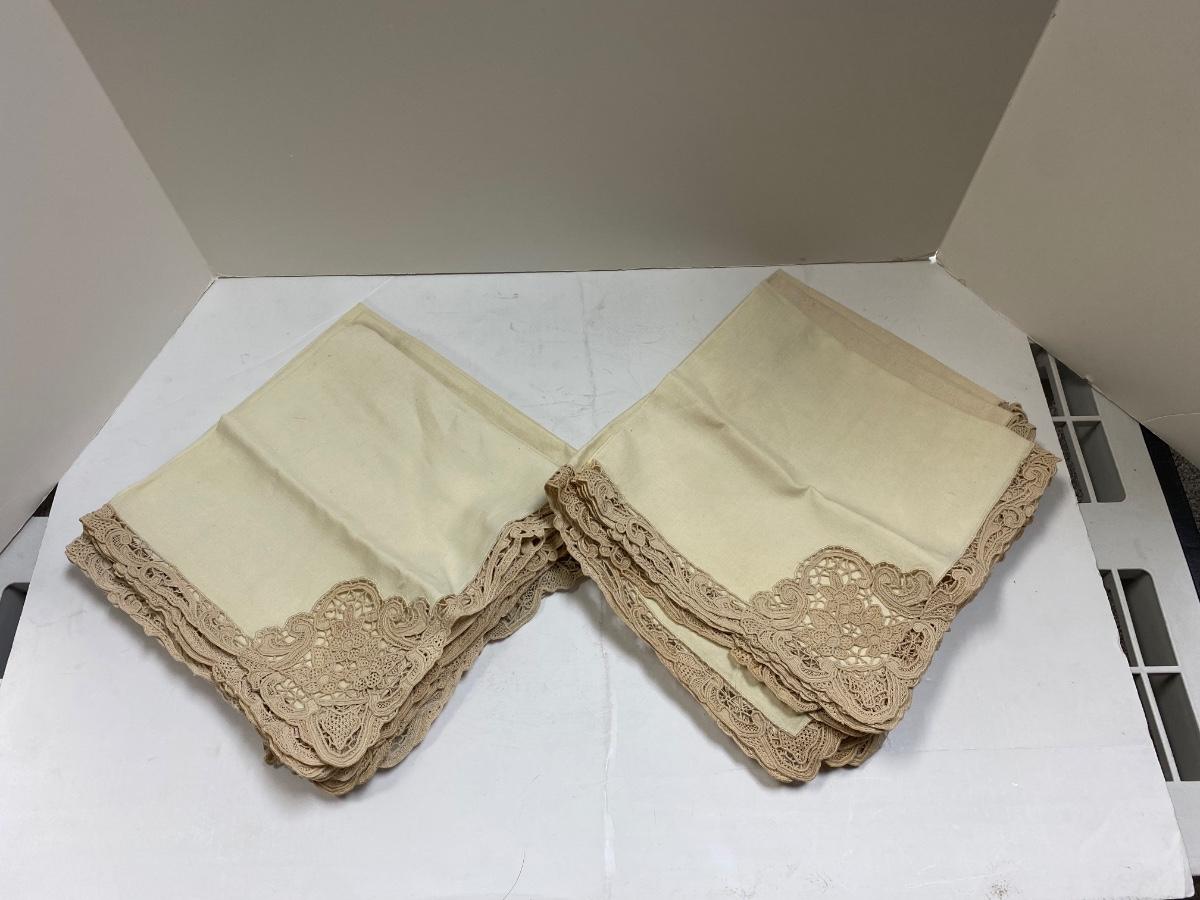 Lot of Lace Crochet Edge Linen Napkins. May be discolored or have spots.