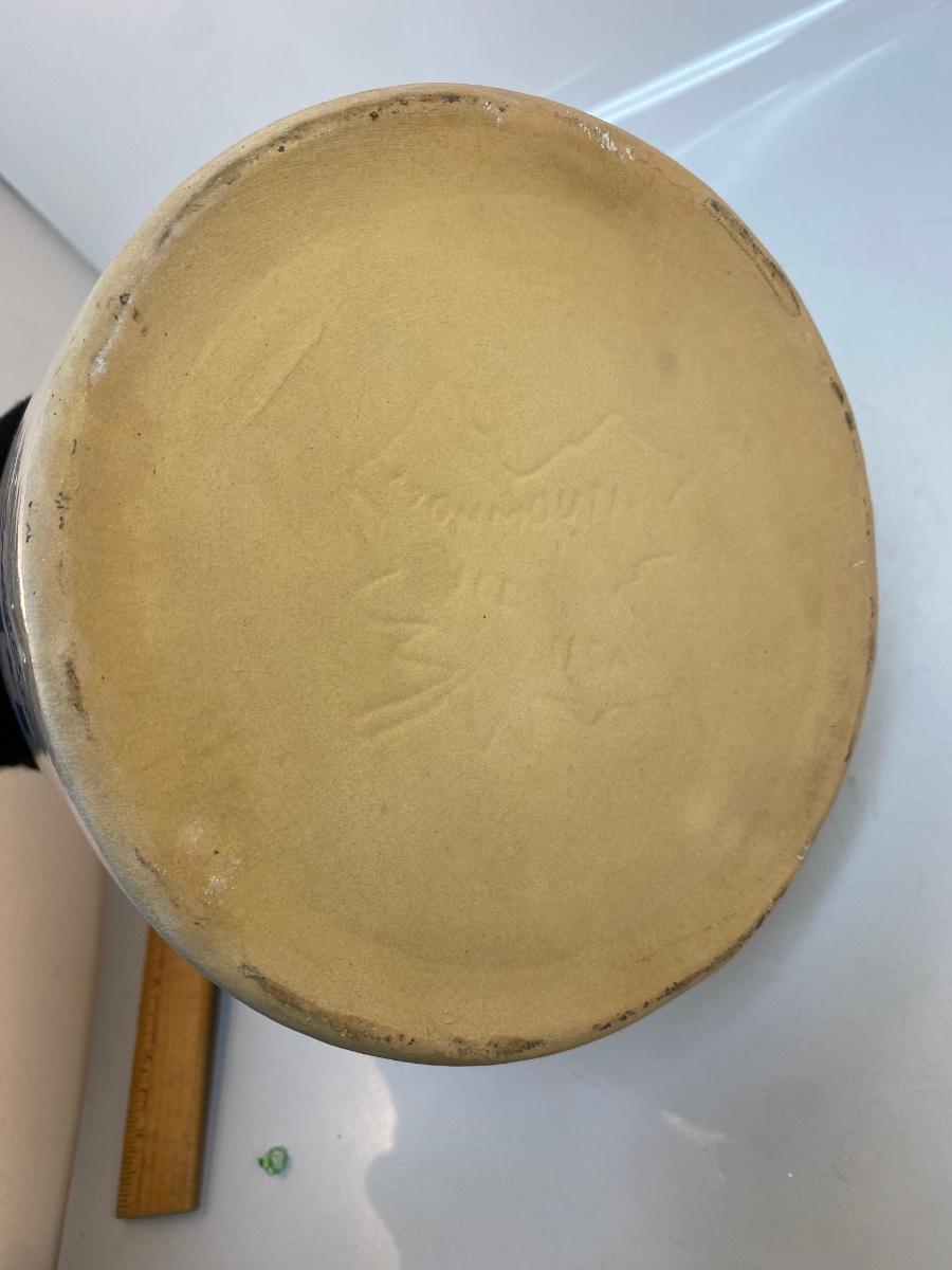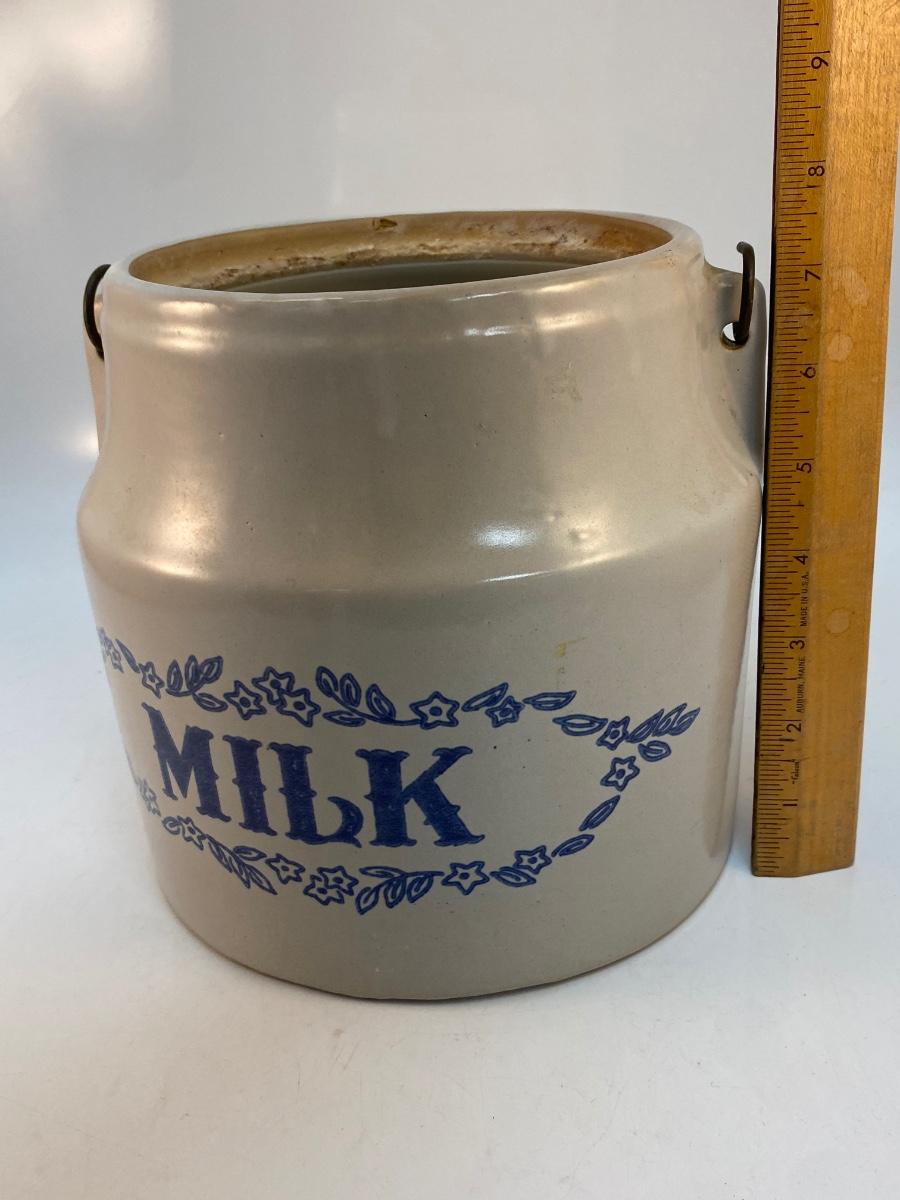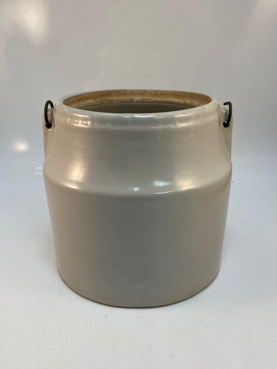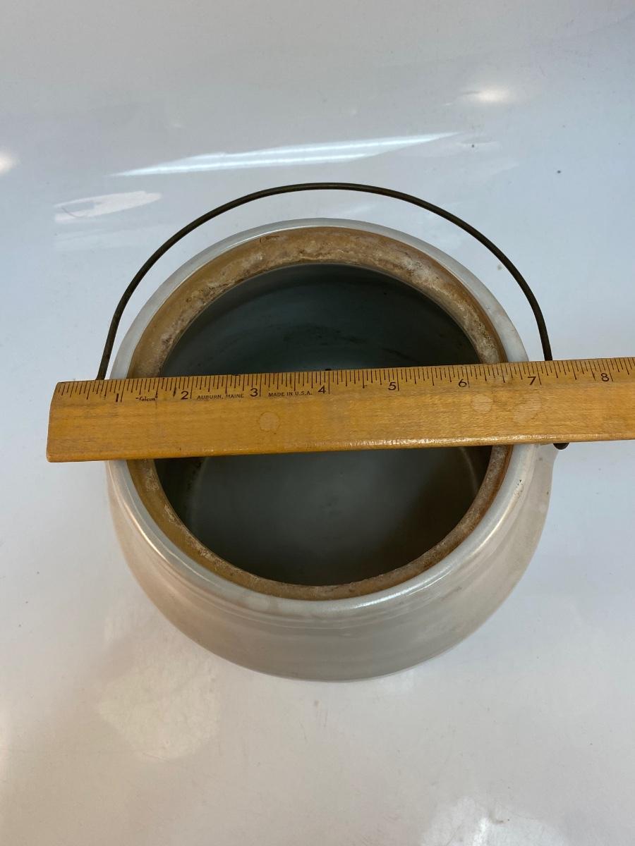 Vintage Monmouth Stoneware Pottery Milk Bucket Crock with Metal Wire Handle No Lid