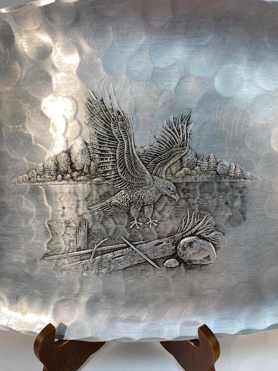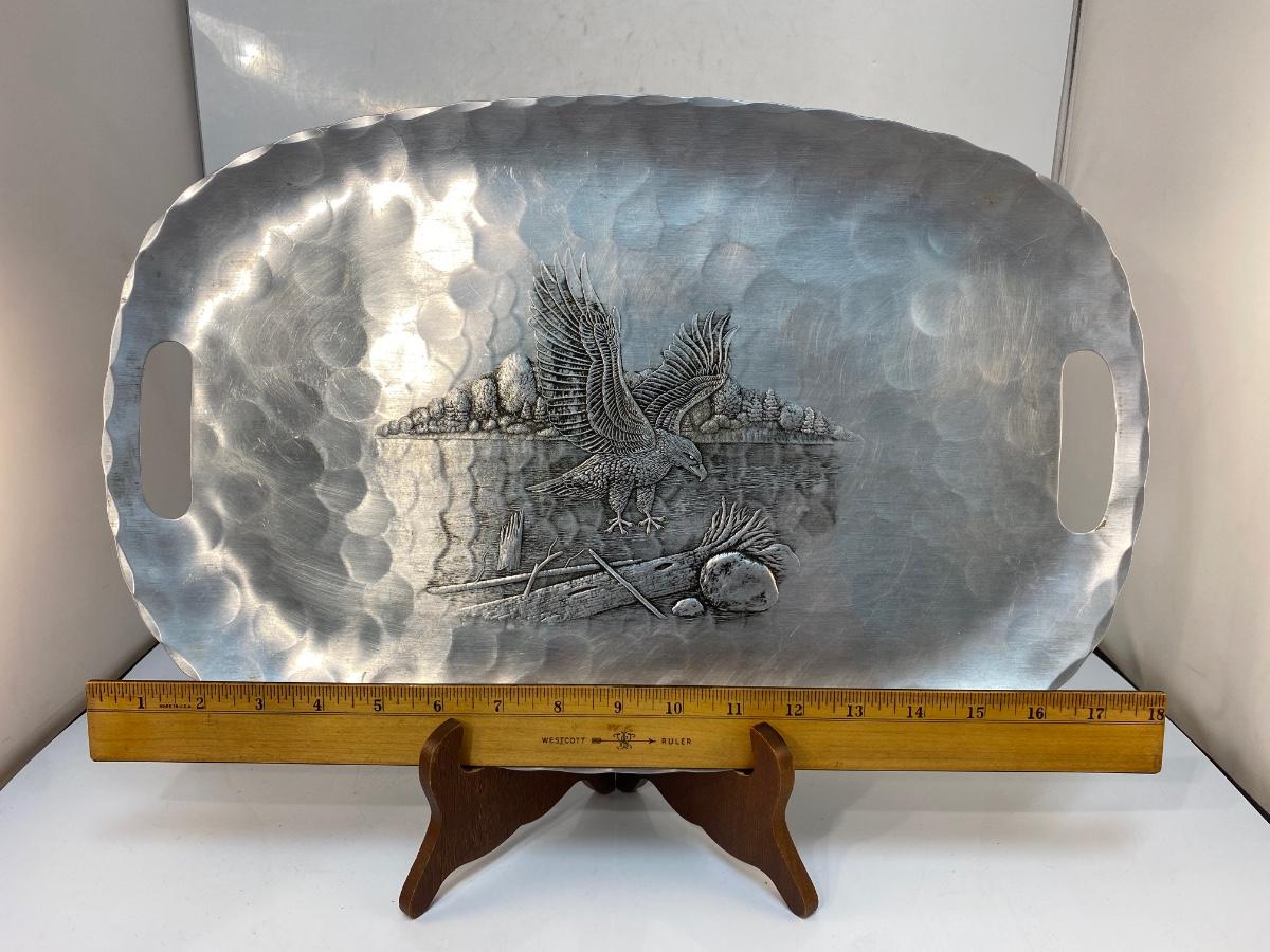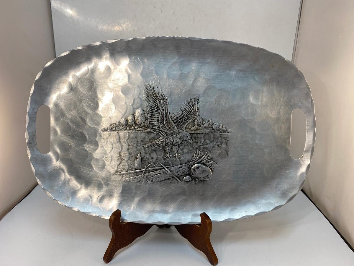 Hammered Embossed Aluminum Wendell August Forge Handmade Serving Tray Eagle in Flight