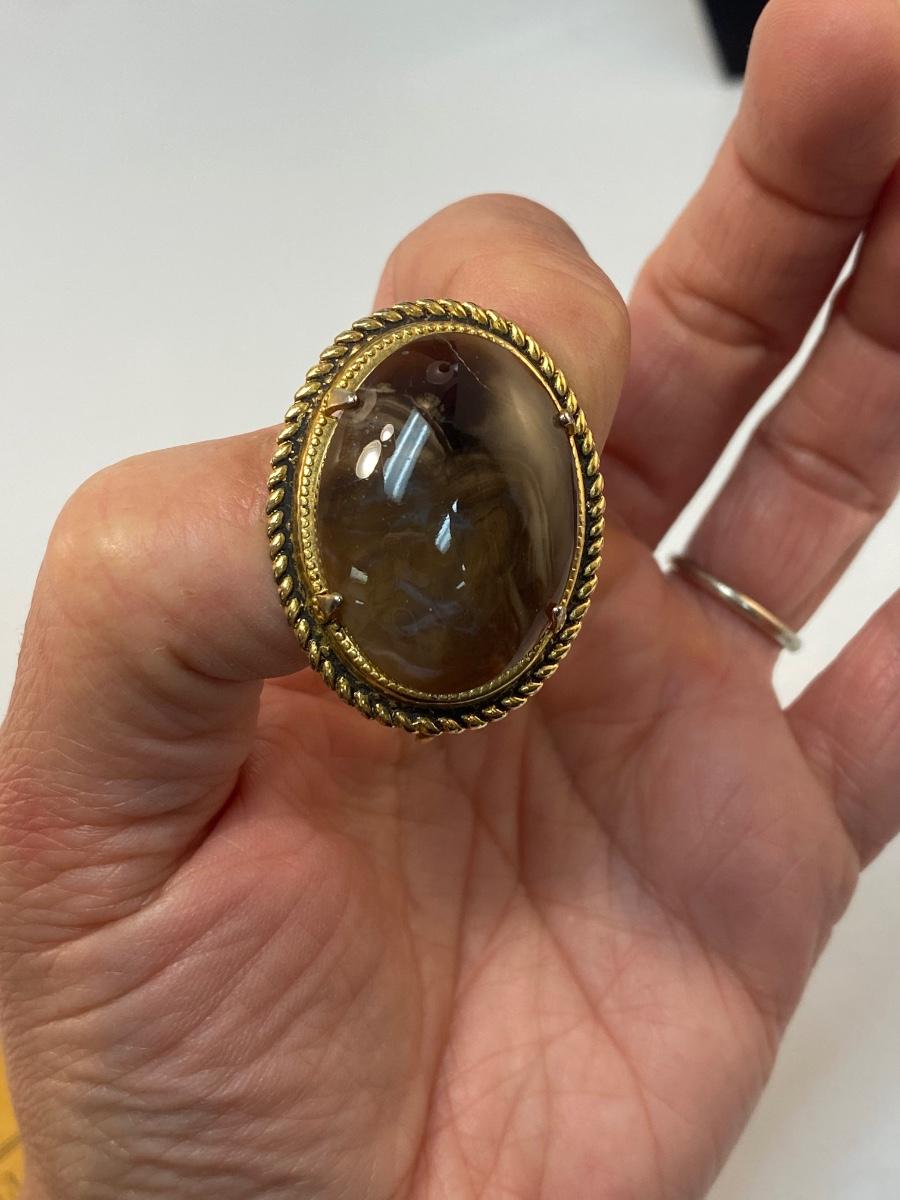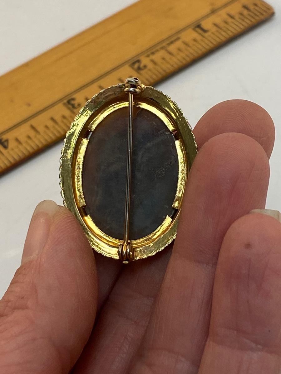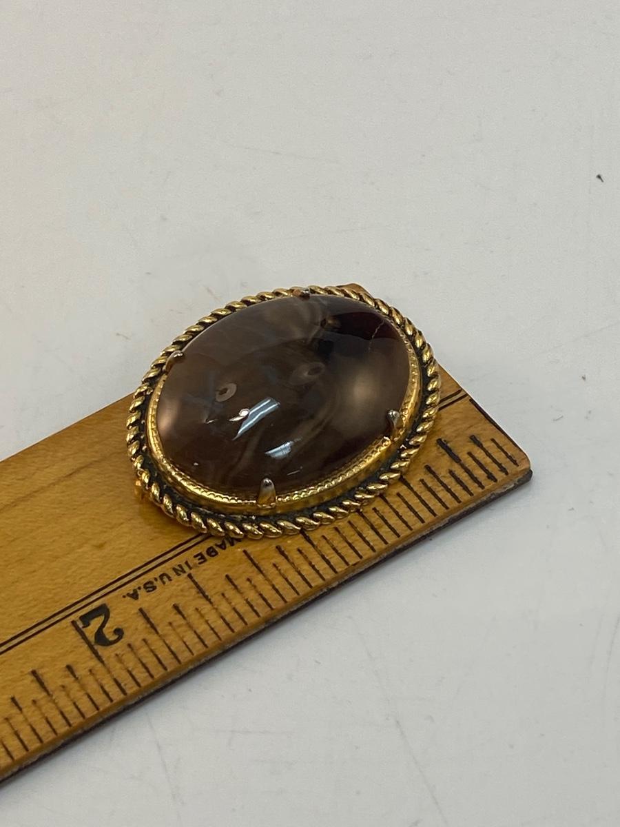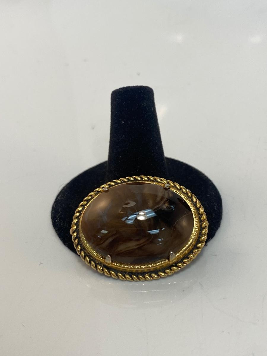 Oval Gold Tone & Polished Stone Swirled Agate Cabochon Brooch Pin Unbranded