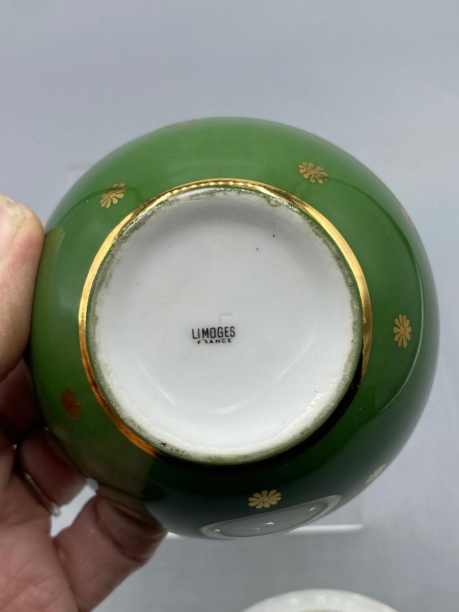 Vintage Green Limoges Lidded Trinket Dish with Victorian Couple Romantic Scene on Top
