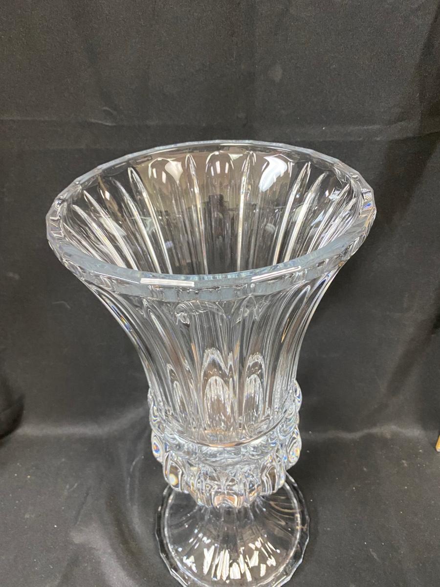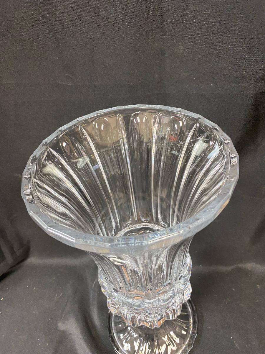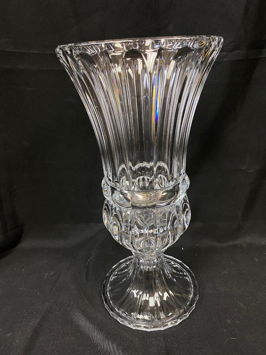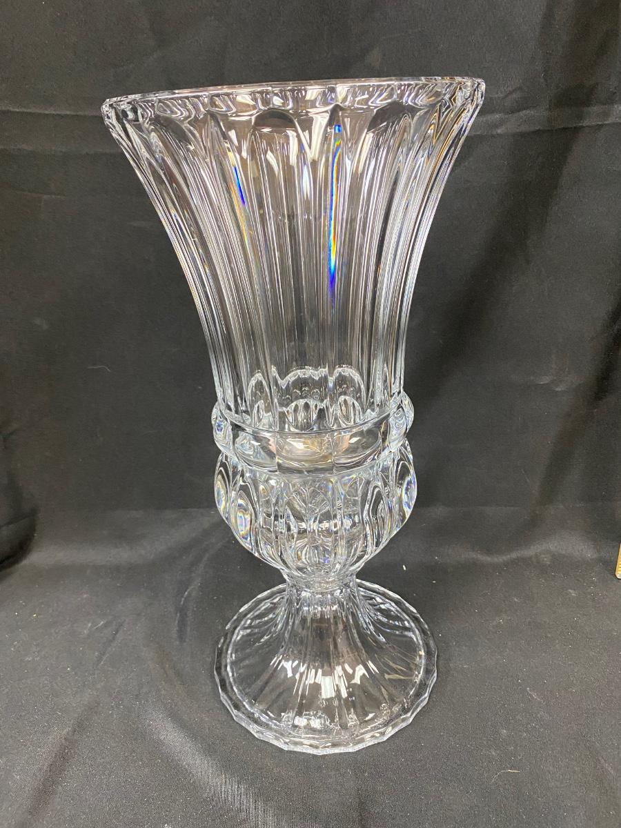 Large Fluted Heavy Thick Quality Crystal Glass Pedestal Vase