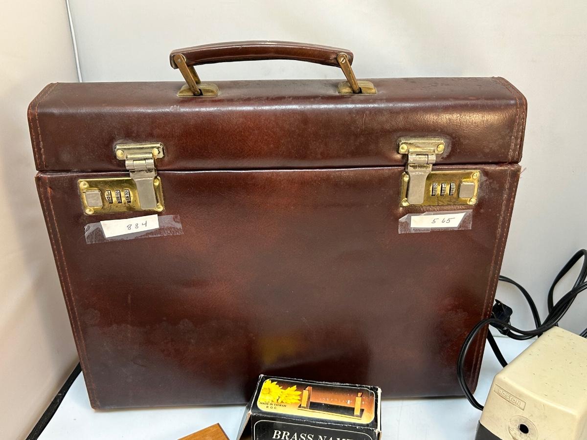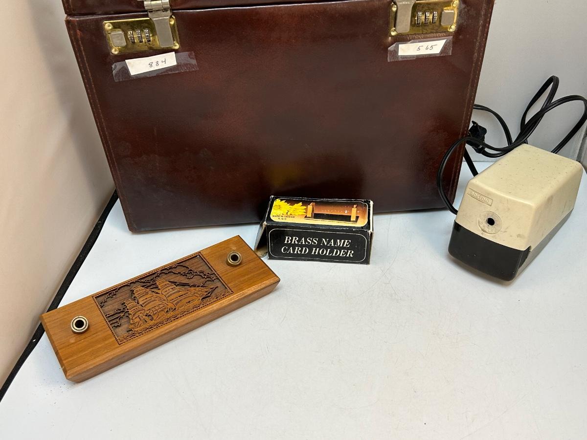 Vintage Retro Lot of Office Business Items Briefcase Sharpener Pen Holder Business Card Holder