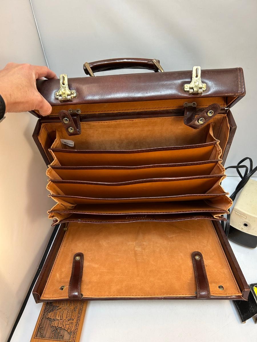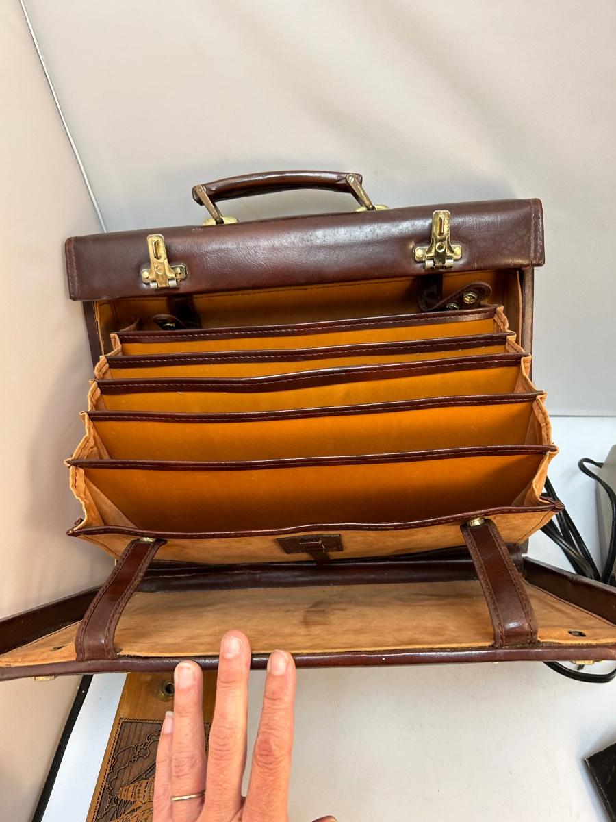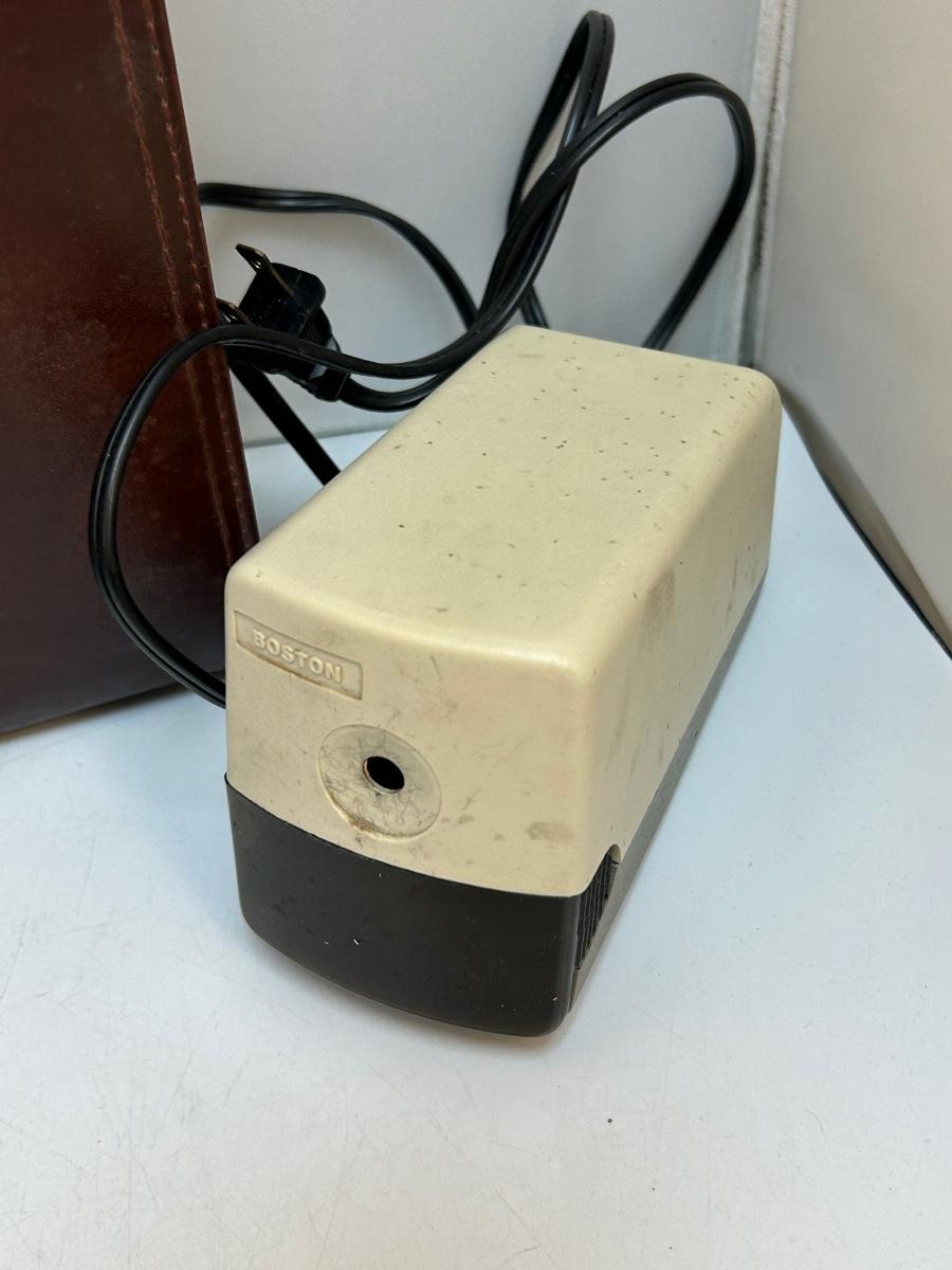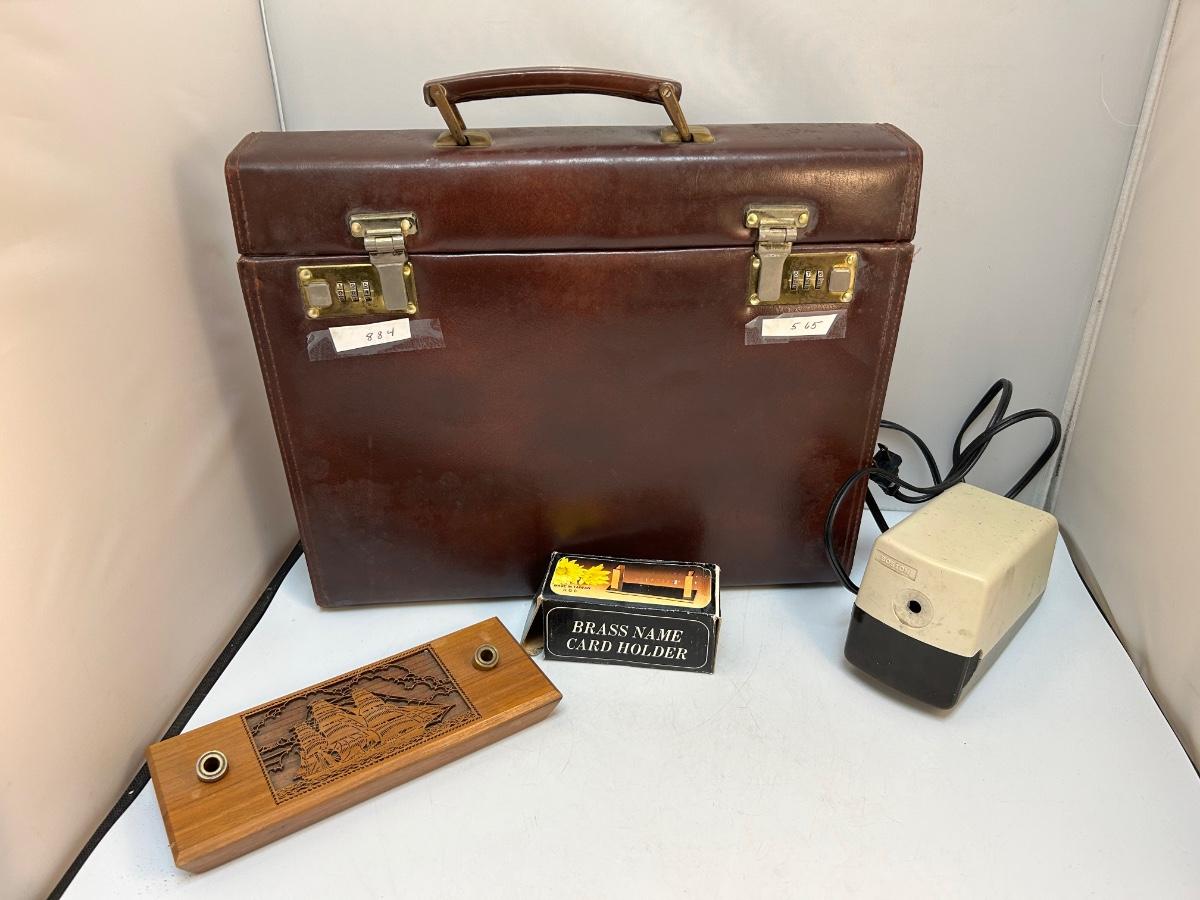 Vintage Retro Lot of Office Business Items Briefcase Sharpener Pen Holder Business Card Holder. In vintage used condition. The latch on left has to manually be moved to latch closed. Sharpener tested and works well.