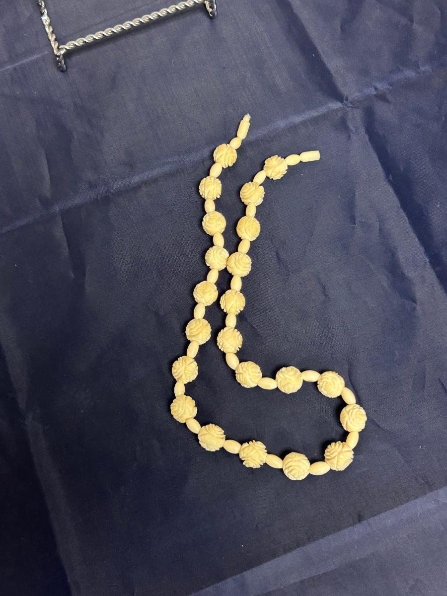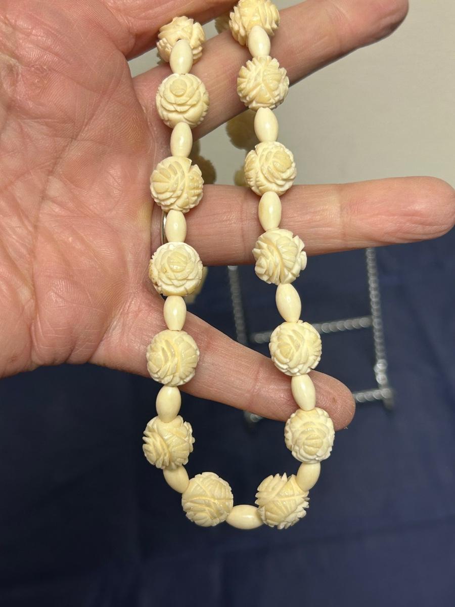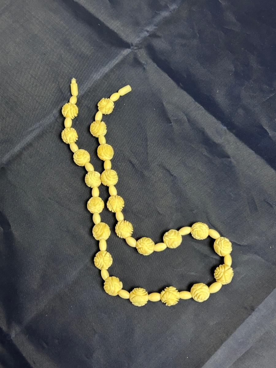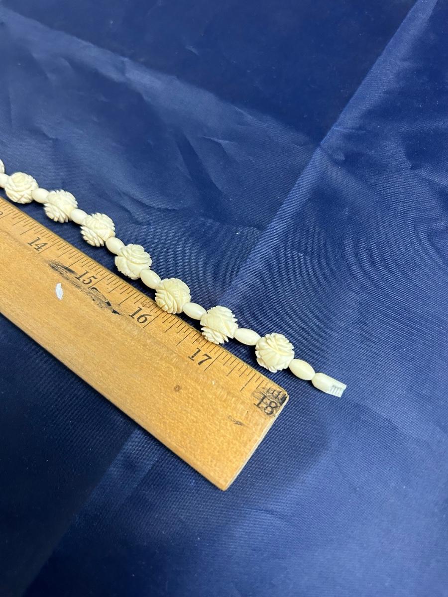 Vintage Retro Carved Off White Flower Beaded Necklace for Parts Crafting or Repair