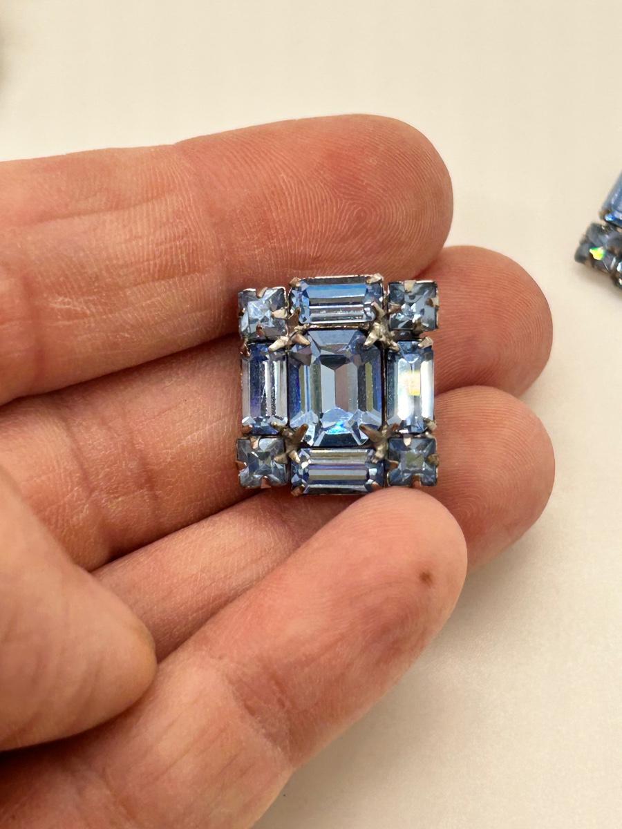 Two Pairs of Vintage Brilliant Blue Rhinestone Clip Style Earrings. In good condition. Beautiful blue color. Unbranded.