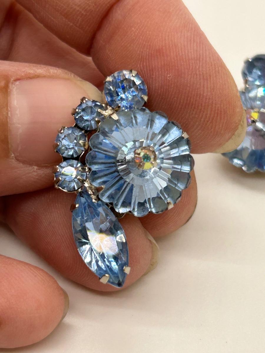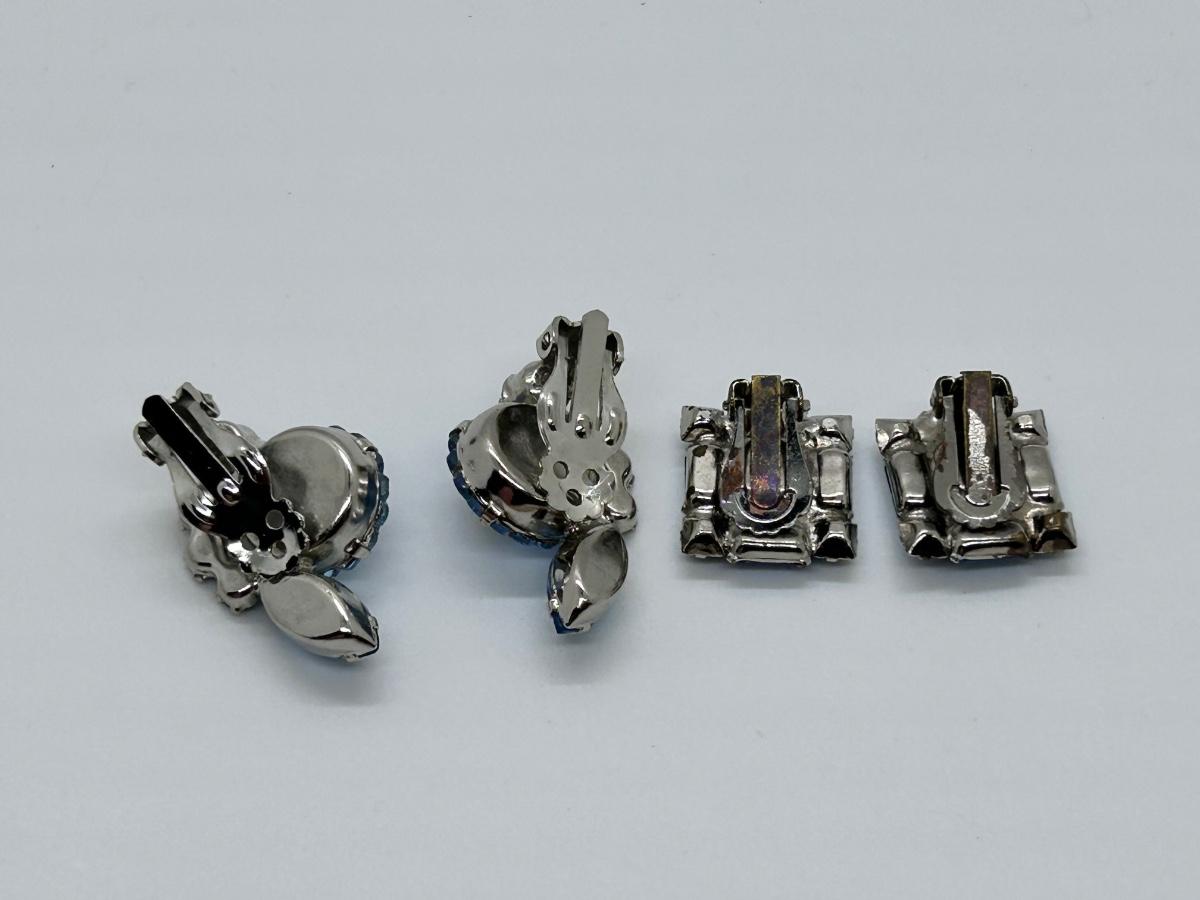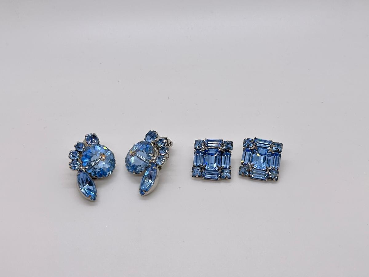 Two Pairs of Vintage Brilliant Blue Rhinestone Clip Style Earrings