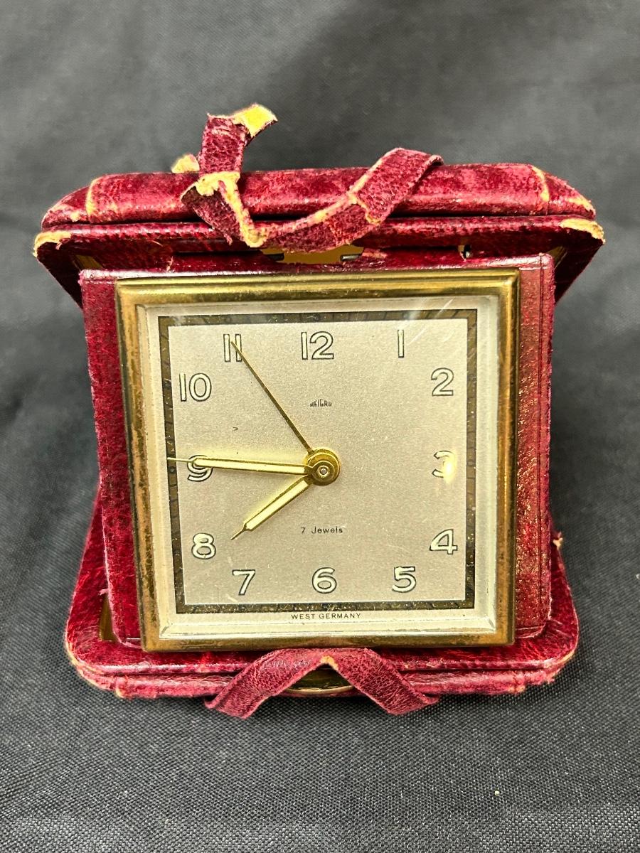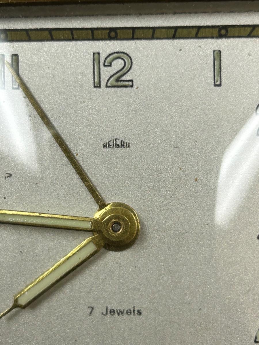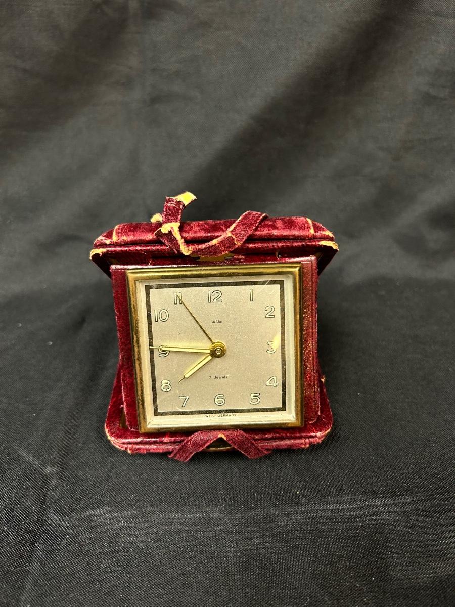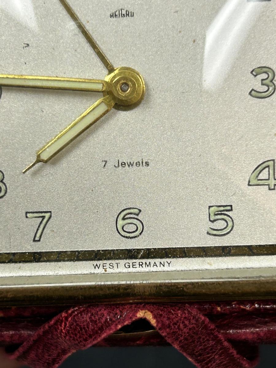 Vintage Heigru Luggage Shaped Travel Alarm Clock 7 Jewels West Germany. A little worn but works.
