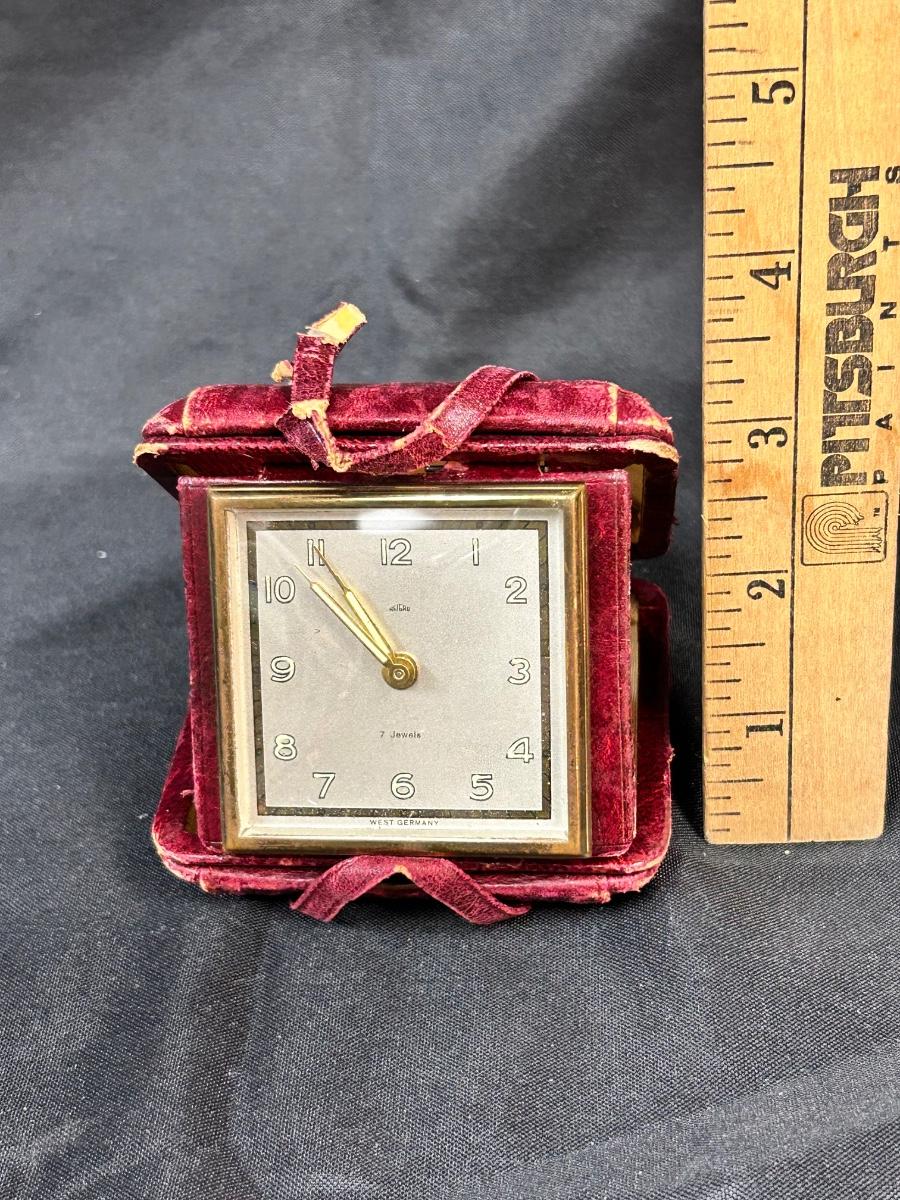 Vintage Heigru Luggage Shaped Travel Alarm Clock 7 Jewels West Germany