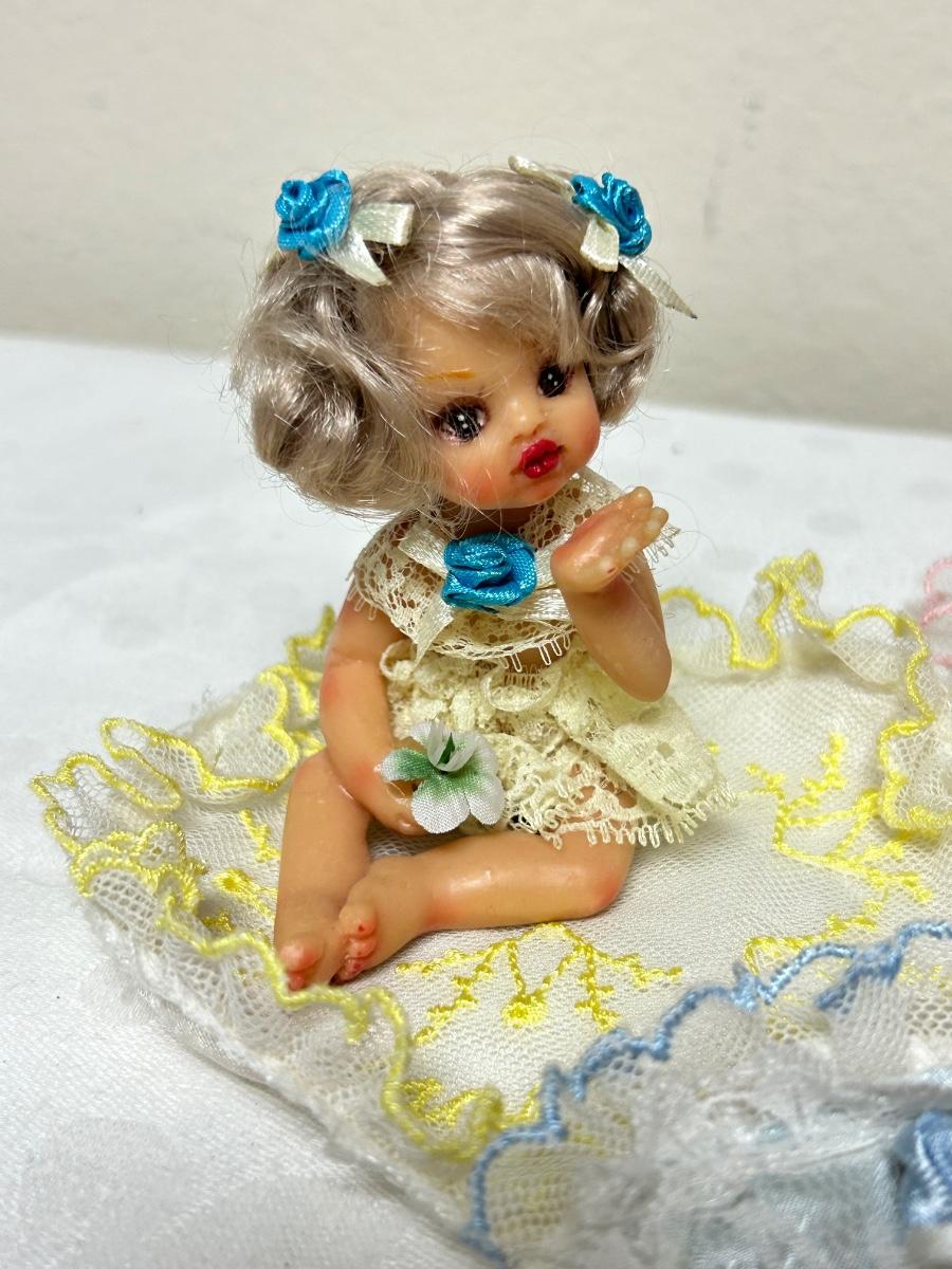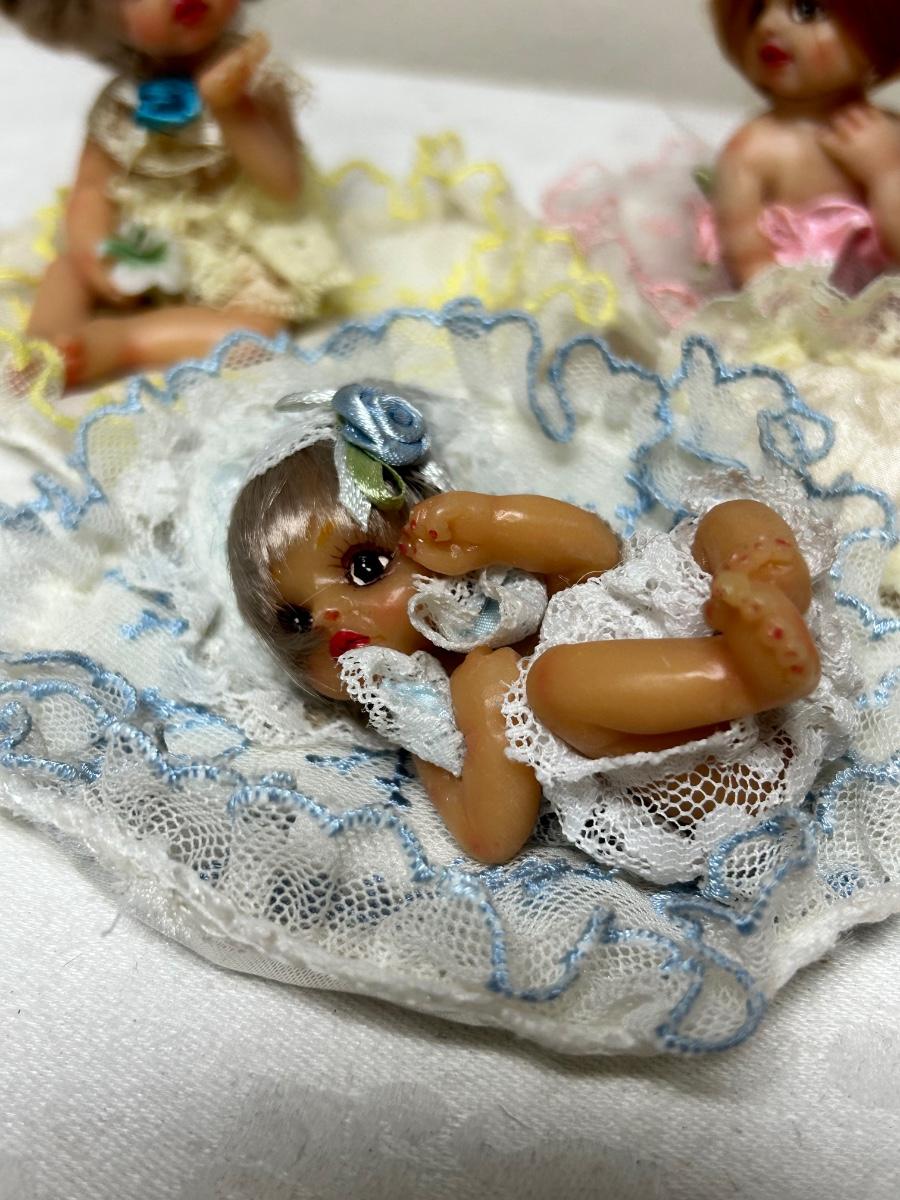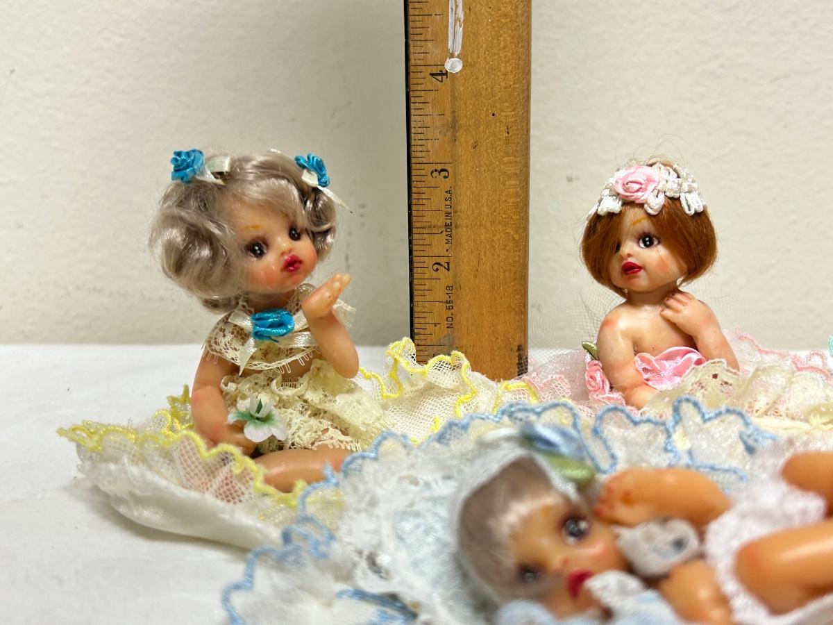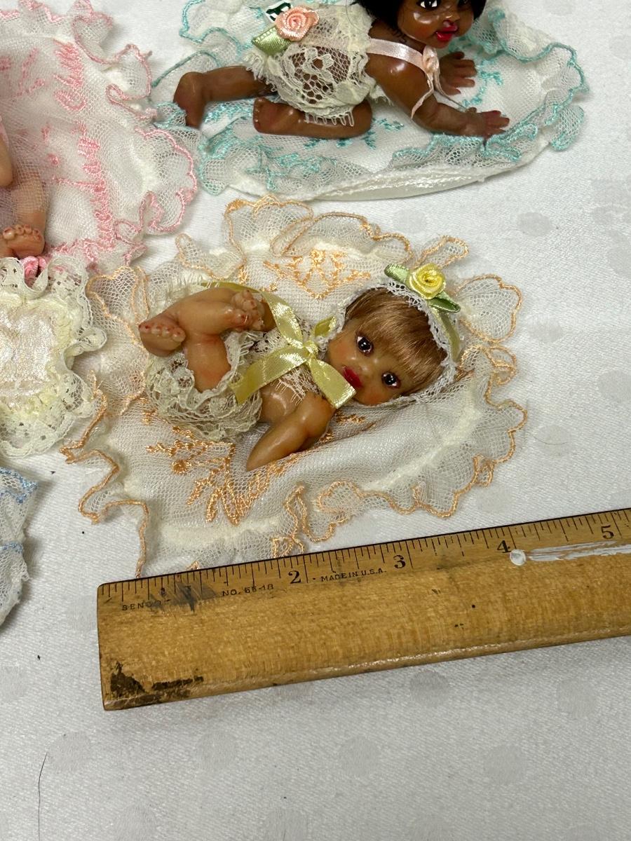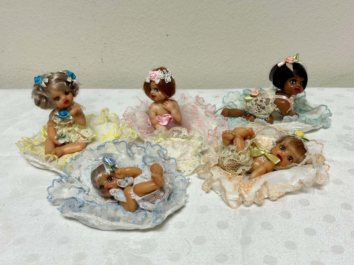 Lot of 5 Saturday's Child Miniature Resin Plastic Baby Doll Figurines. Small, only about 3" size. May be dusty from previous display.