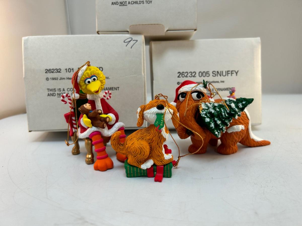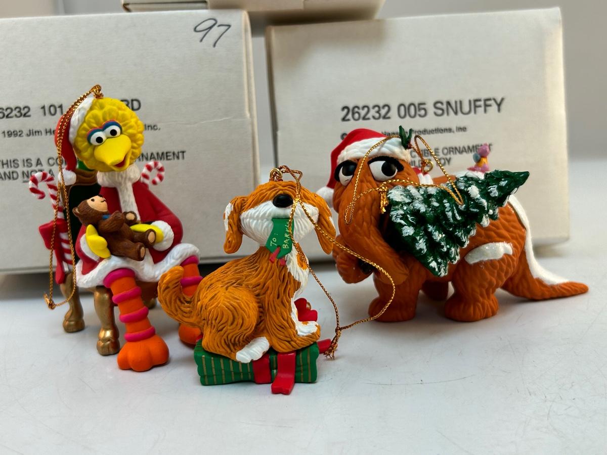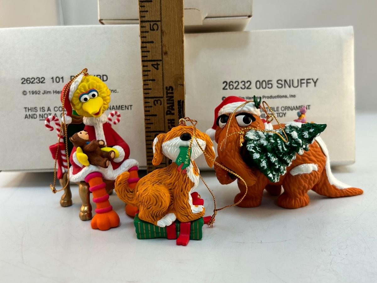 Grolier Christmas Holiday Tree Ornaments Sesame Street Big Bird Snuffy Barkley