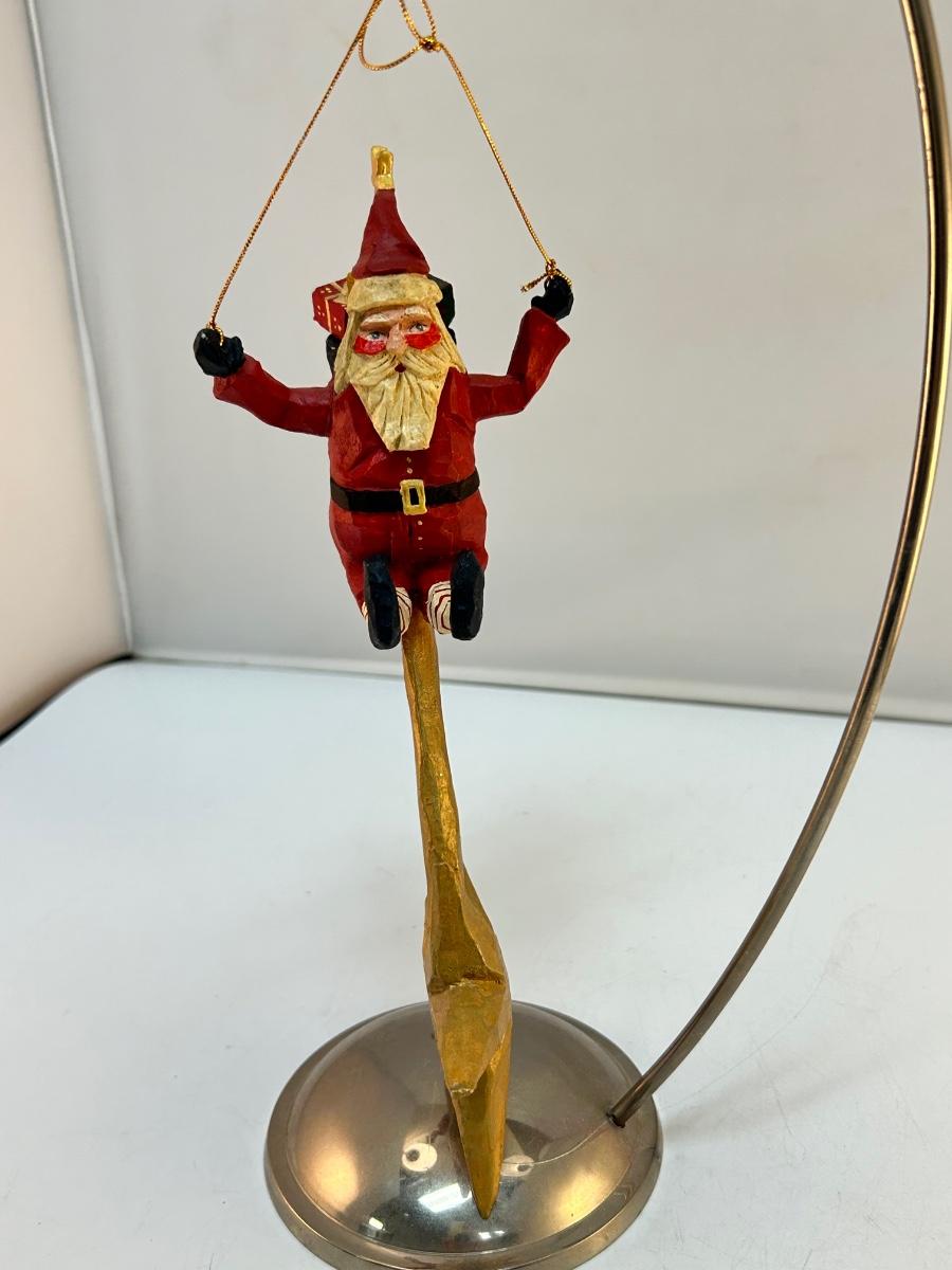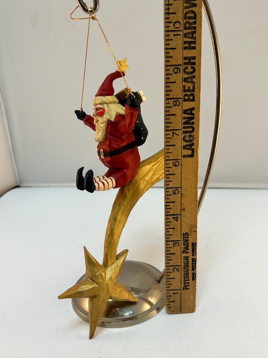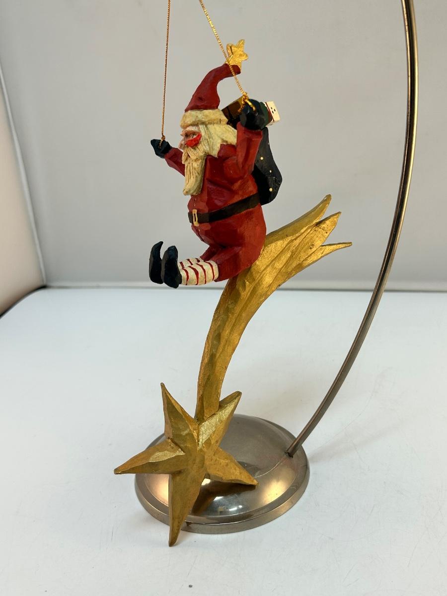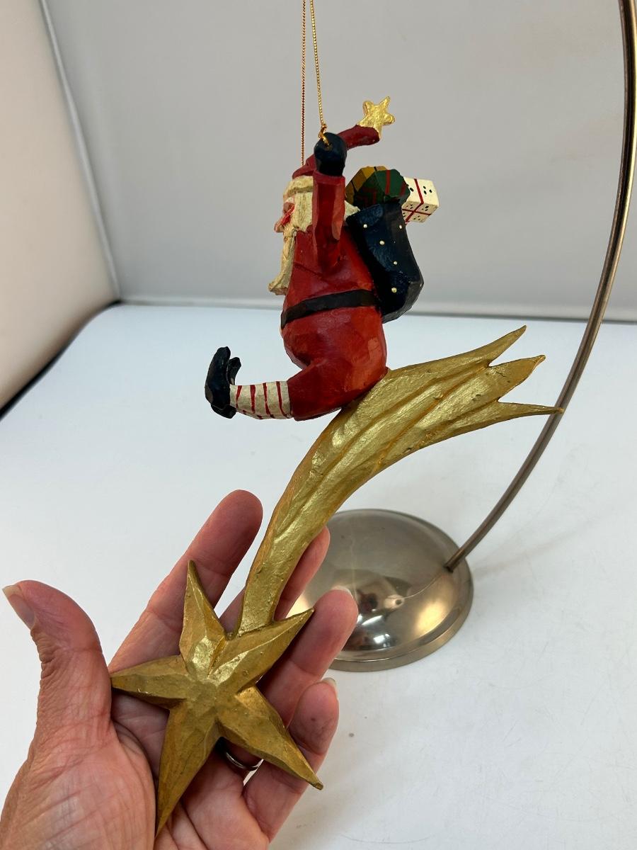 1996 House of Hatten Santa Claus on Shooting Star Christmas Holiday Folk Art Ornament. In good condition. About 9" size. Stand not included.