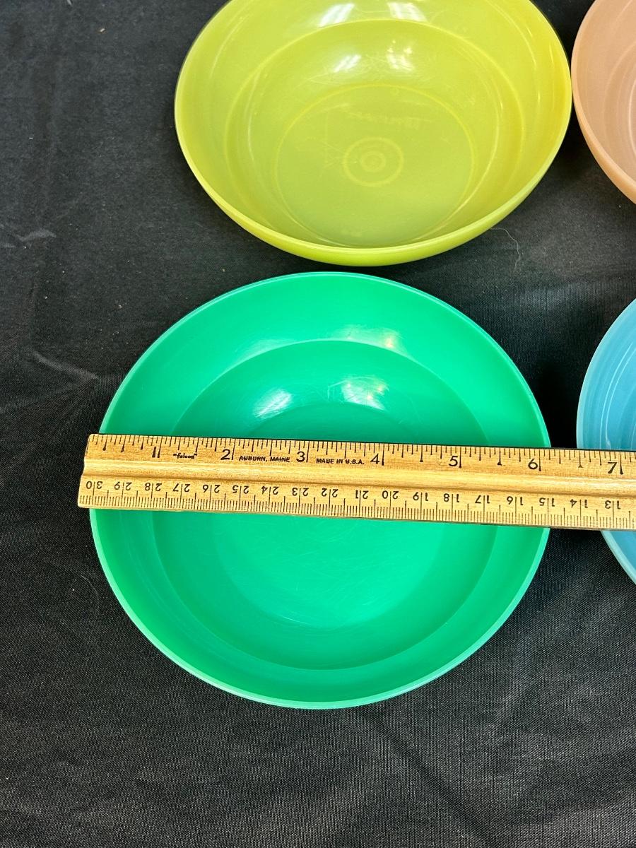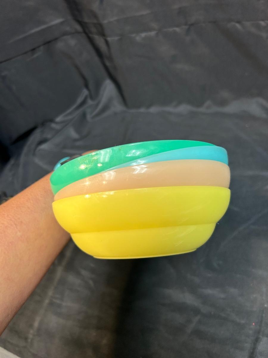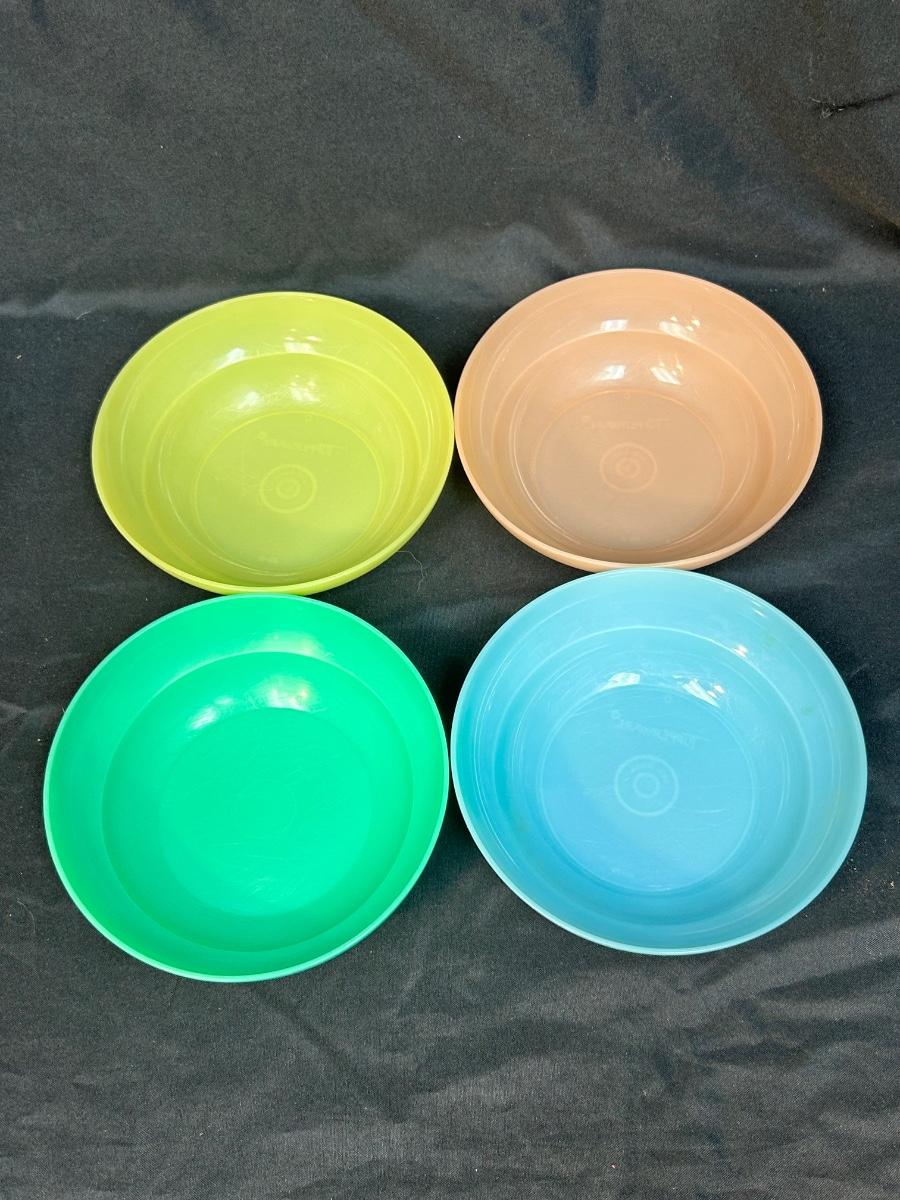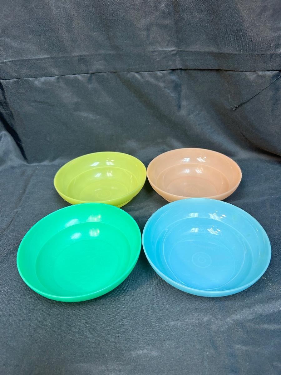 Set of 4 Retro Plastic Cereal Bowls Tupperware Green Blue Pink Yellow