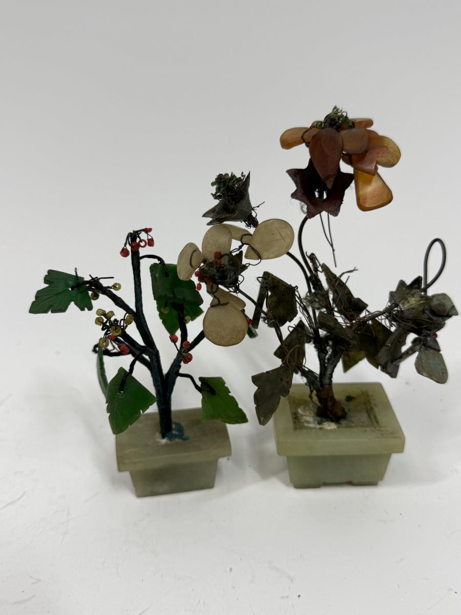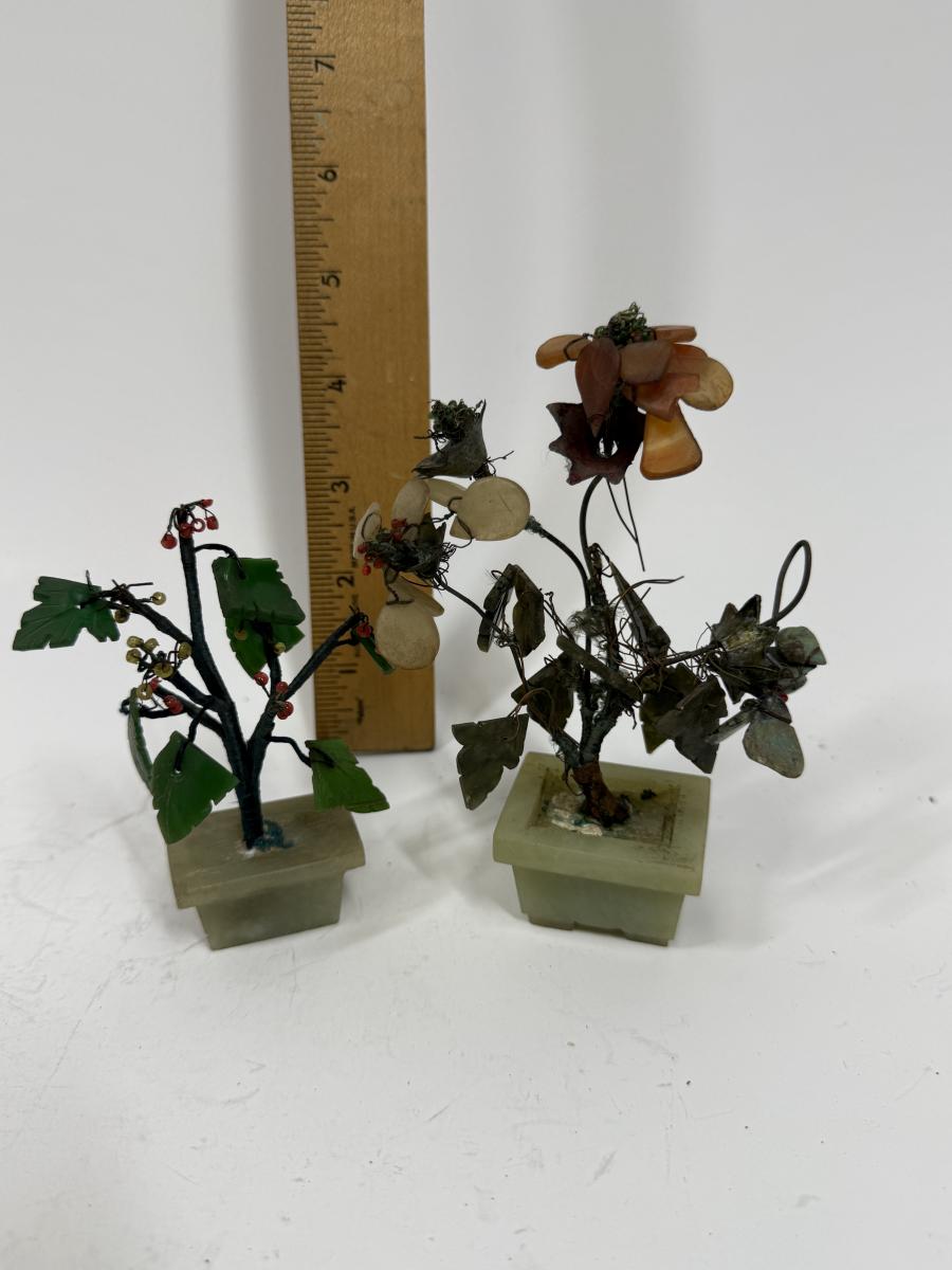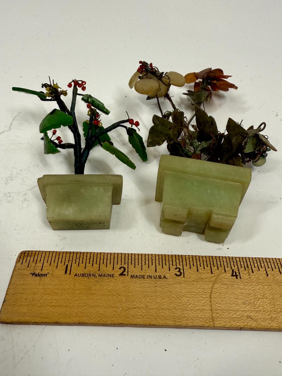 Vintage Chinese Carved Jade and Agate Bonsai Flowering Tree Sculpture Home Decor