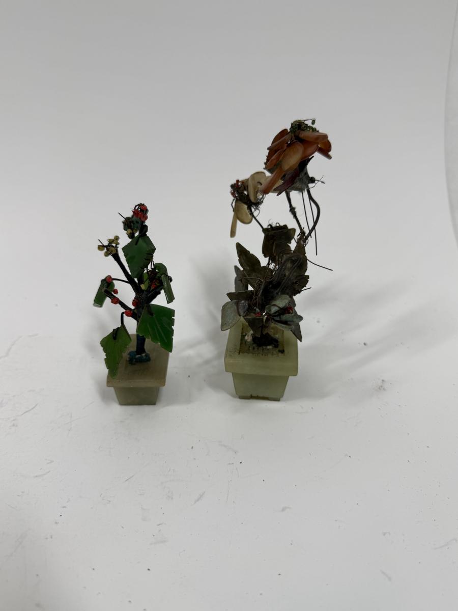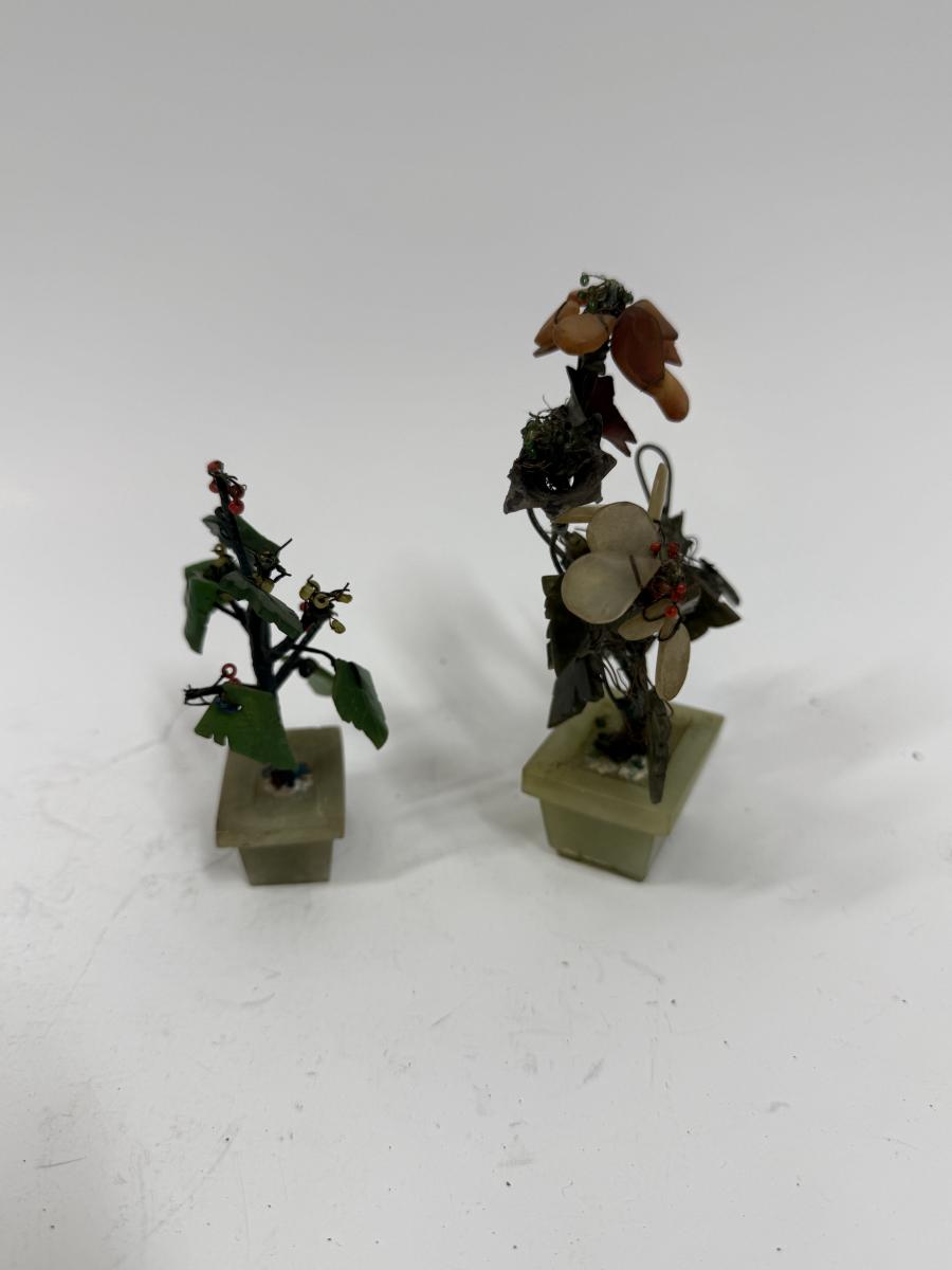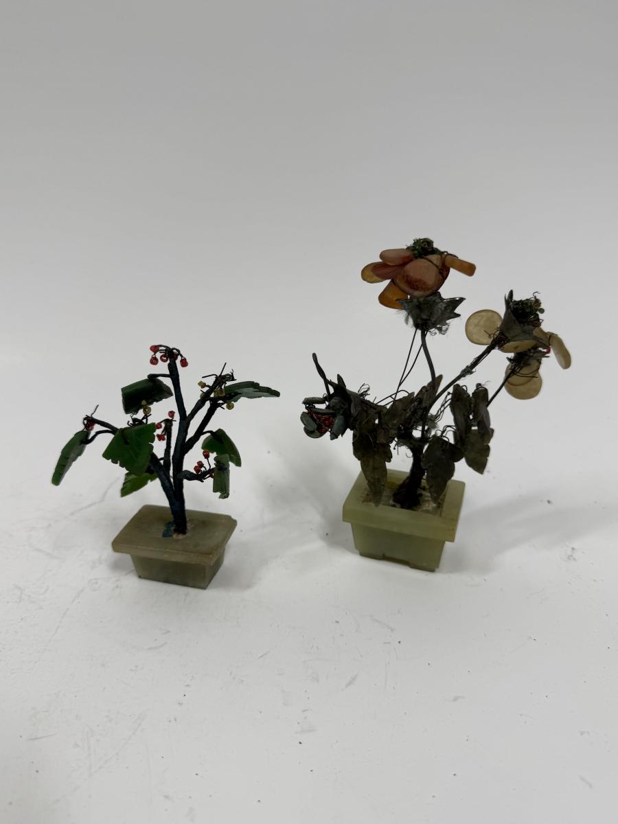 Vintage Chinese Carved Jade and Agate Bonsai Flowering Tree Sculpture Home Decor