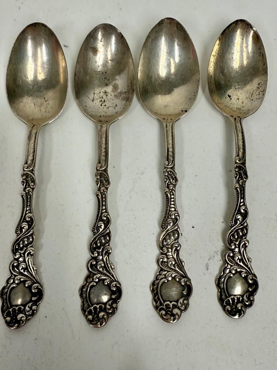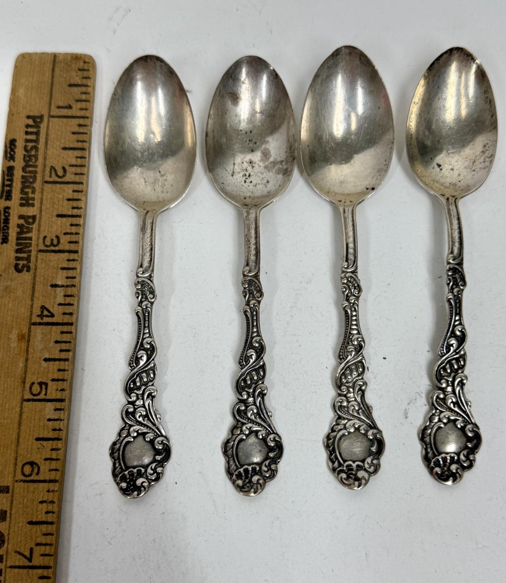 Set of 4 Antique Gorham Sterling Silver Tea Spoons Lion Anchor 1890's
