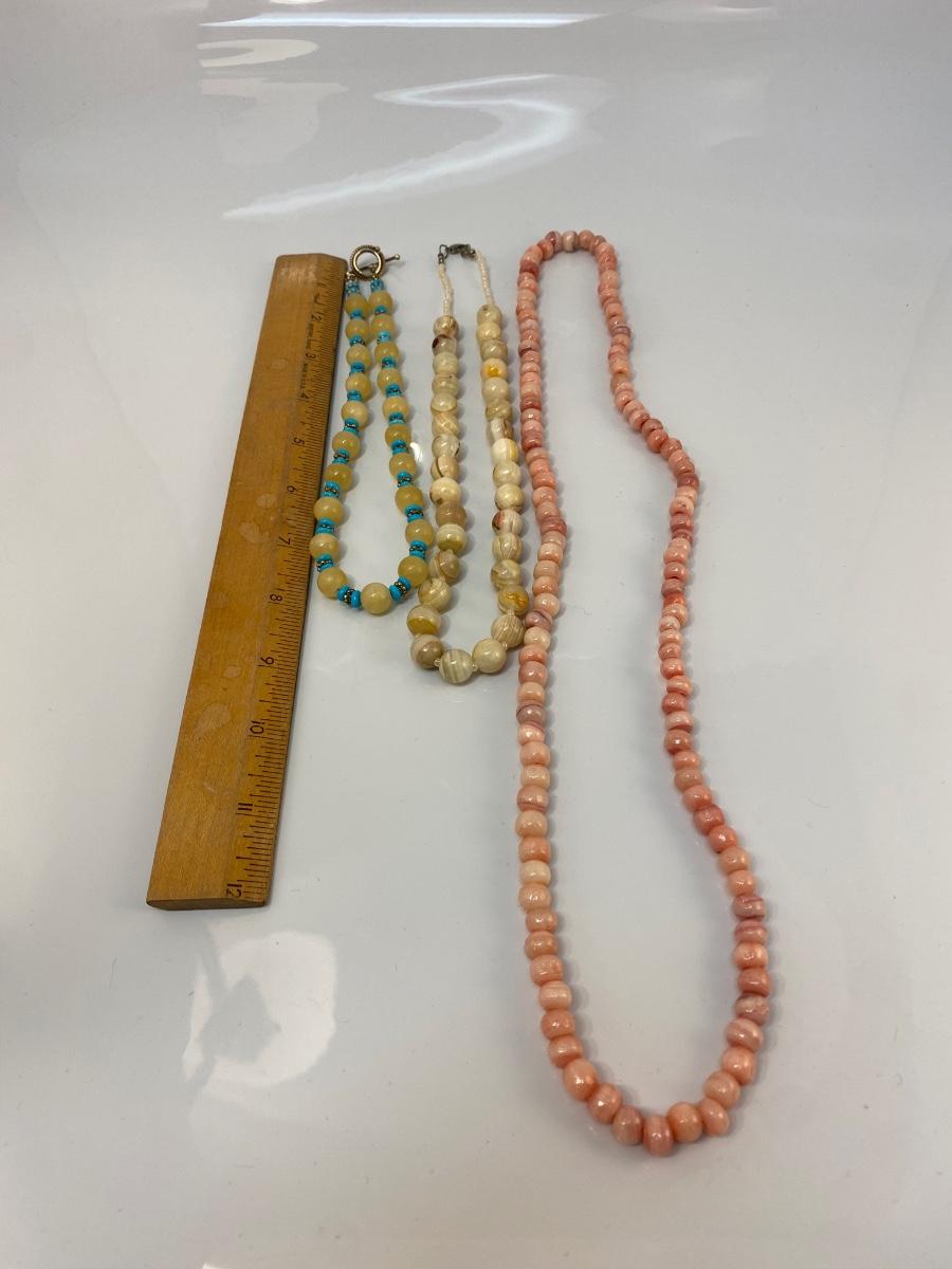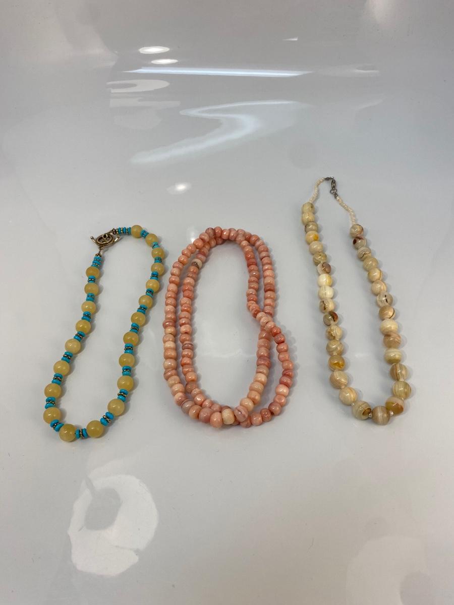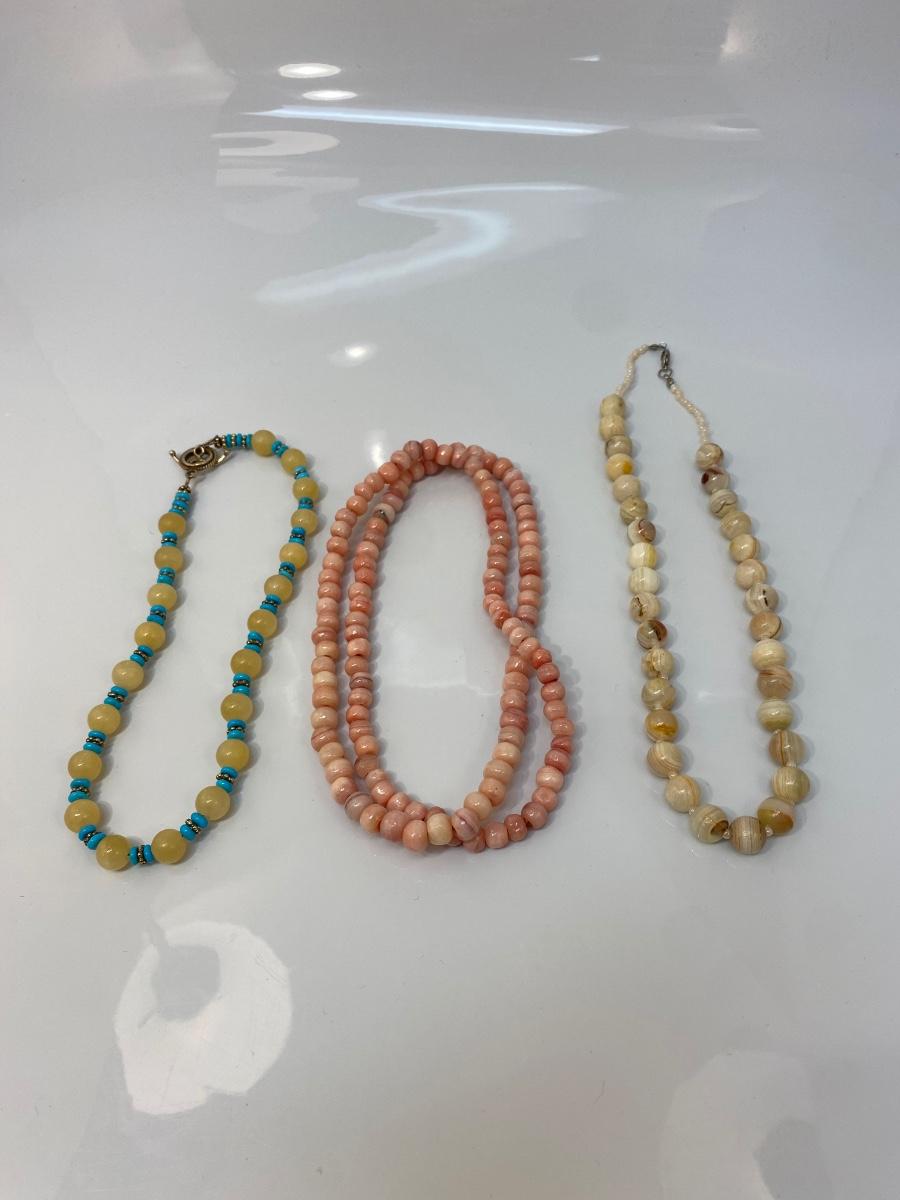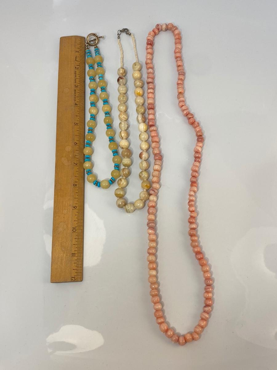 Set of Three Stone Beaded Necklaces. Good condition. One is extra long.