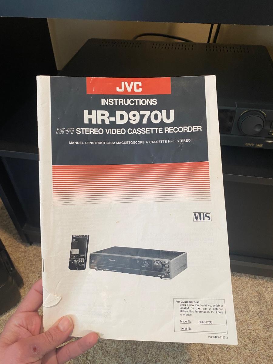 Vintage JVC HR-D970U Hi-Fi Stereo Video Cassette Recorder. Has remote and owner's manual. Untested.