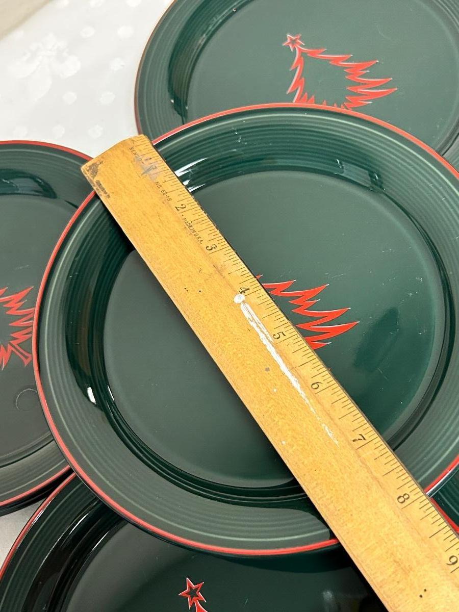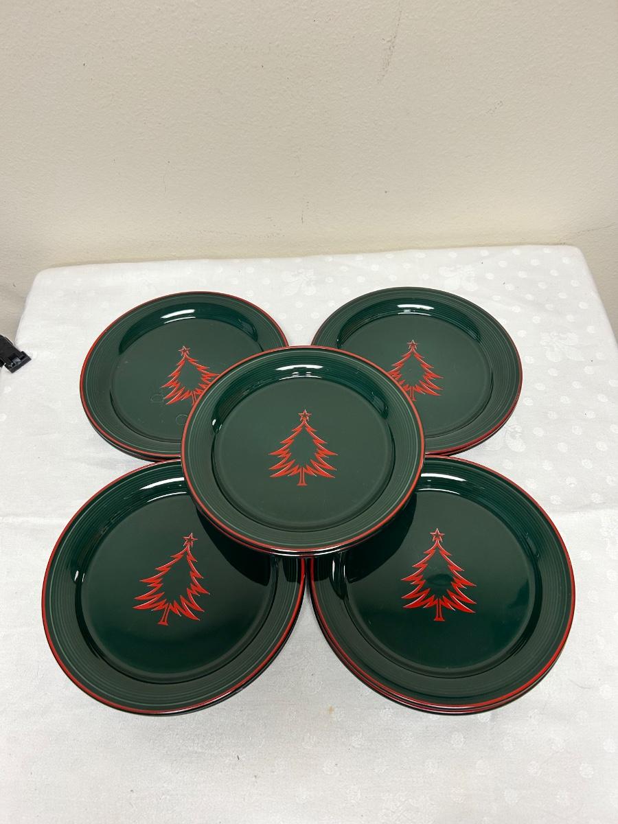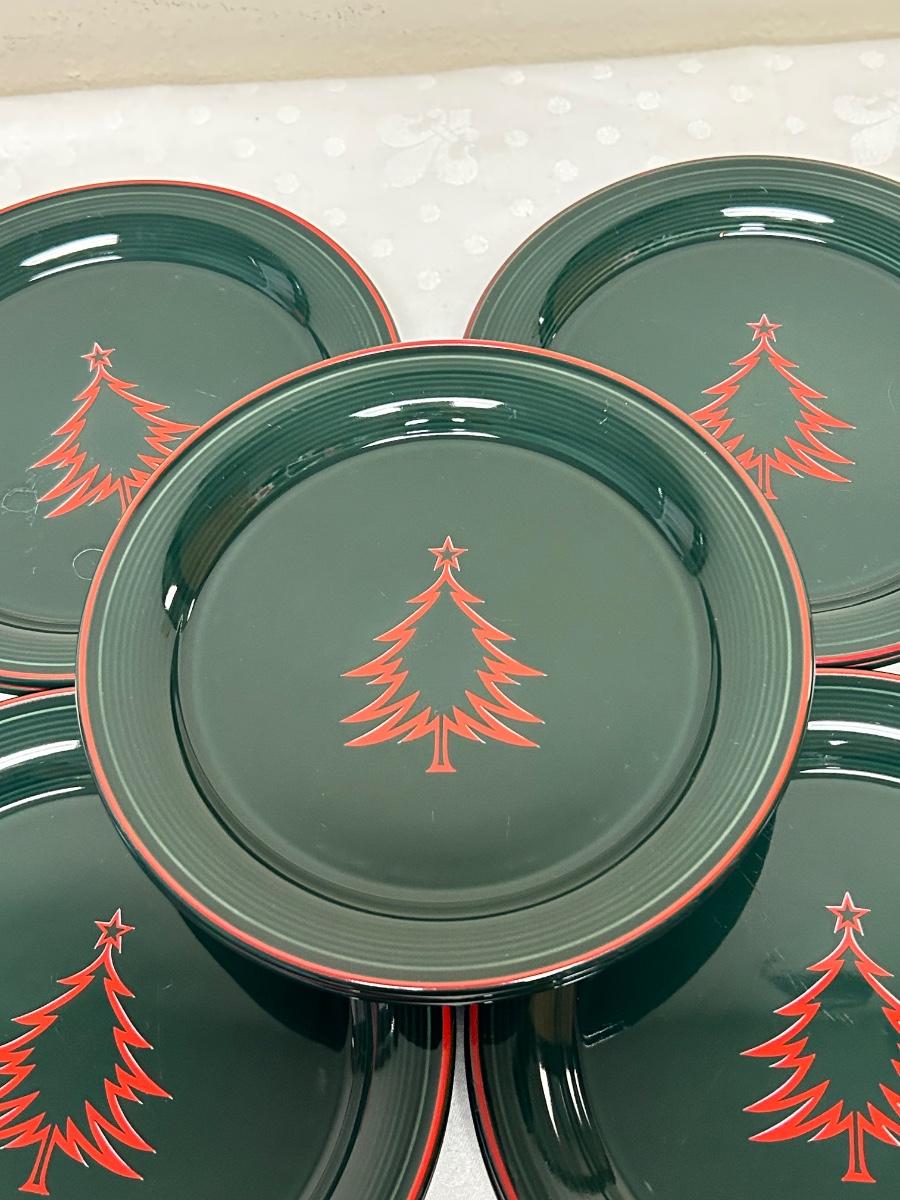 Set of 12 Dark Green and Red Salad Dessert Plates Christmas Tree Theme Holiday Dishware