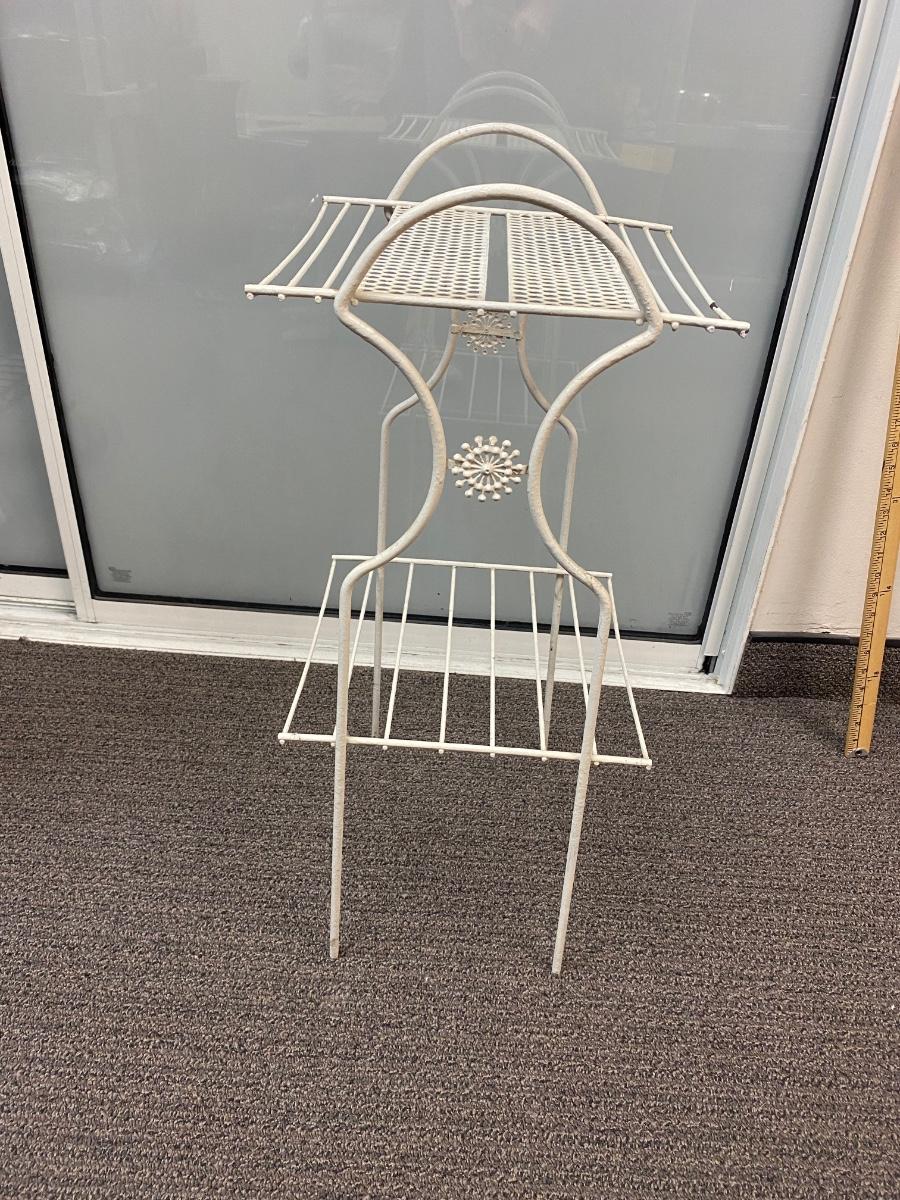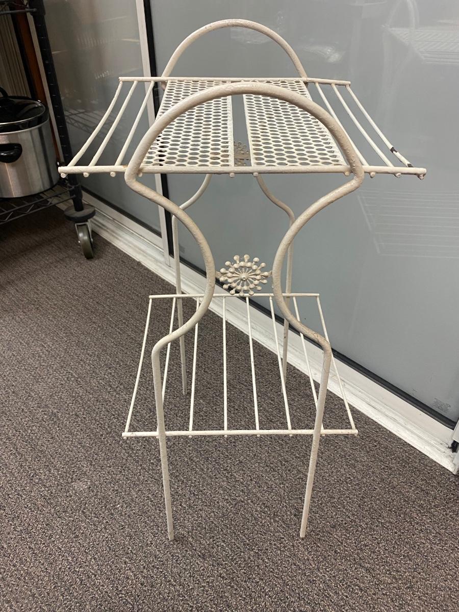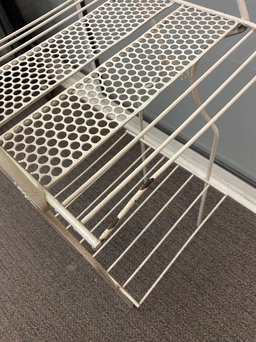 Vintage White Painted Metal Plant Stand Wire Rack Table