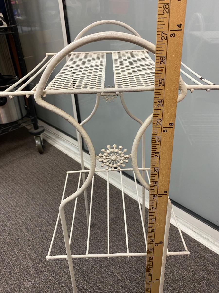 Vintage White Painted Metal Plant Stand Wire Rack Table. in vintage condition. A few minor chips in paint and slight bend to wire. Great indoors or on patio.