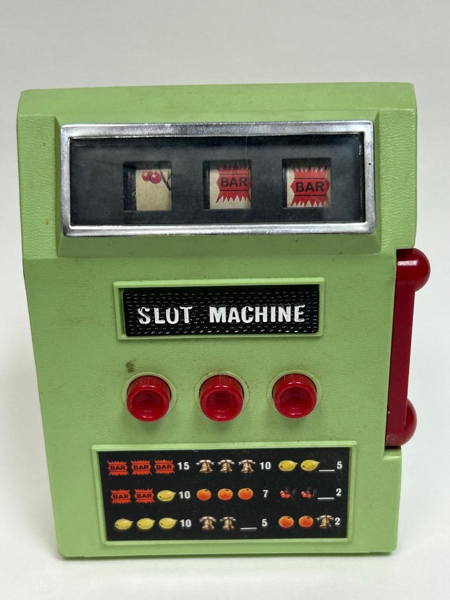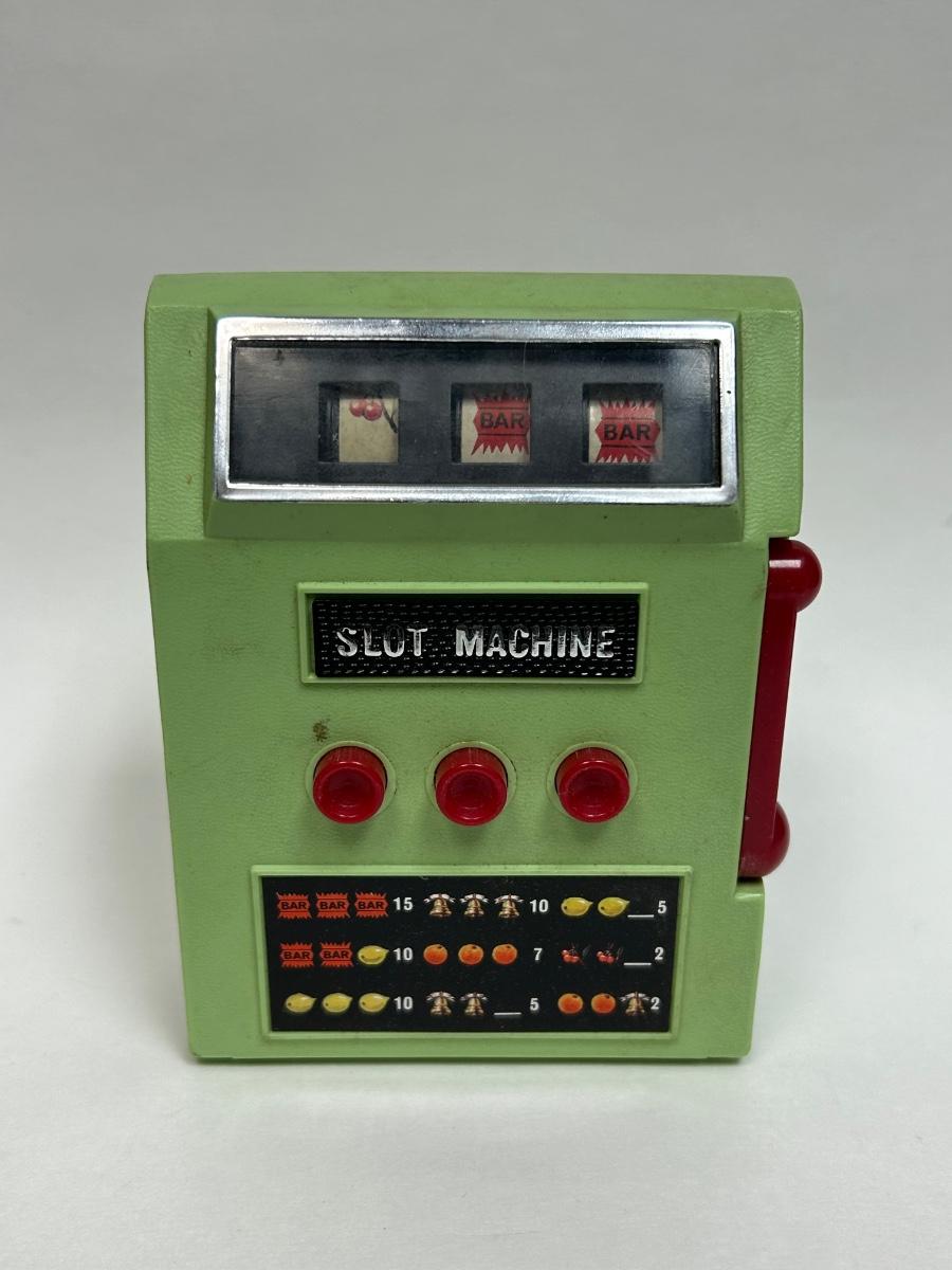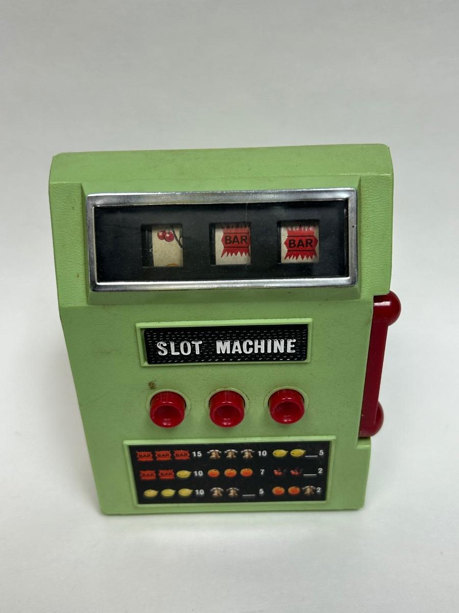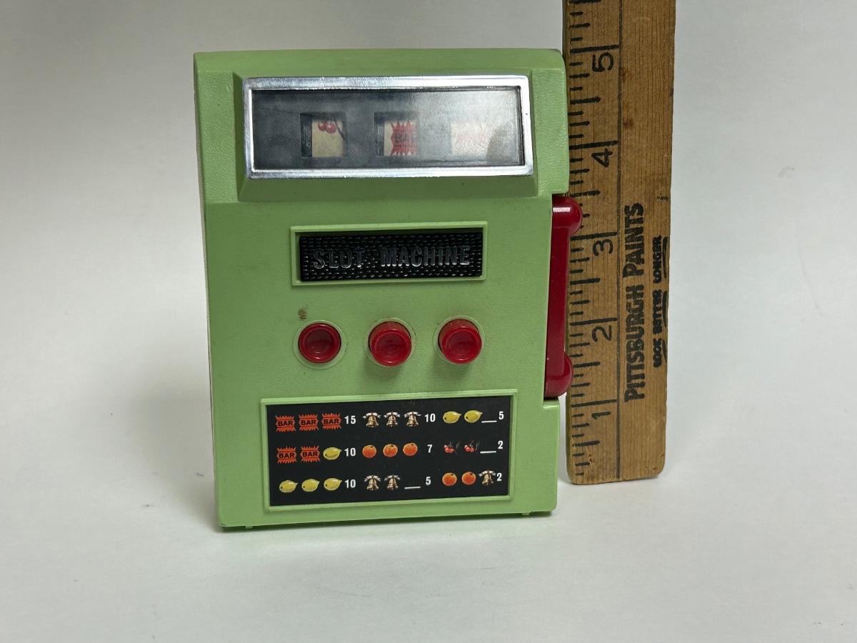 Vintage Made in Japan Battery Operated Plastic Slot Machine Handheld Game. In good vintage condition. Untested with batteries but would display great. About 5" size.