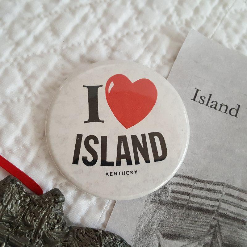 This auction lot is for a collection of three Island, Kentucky Souvenir Pewter Ornaments. Island, Kentucky is in McLean County and one of those places that if you blink you will miss it - but not those folks who have a life history involved in the "Island." These wonderful pewter ornaments have become quite collectible - where are you gonna find 'em. Bonus metal heart pin comes with.