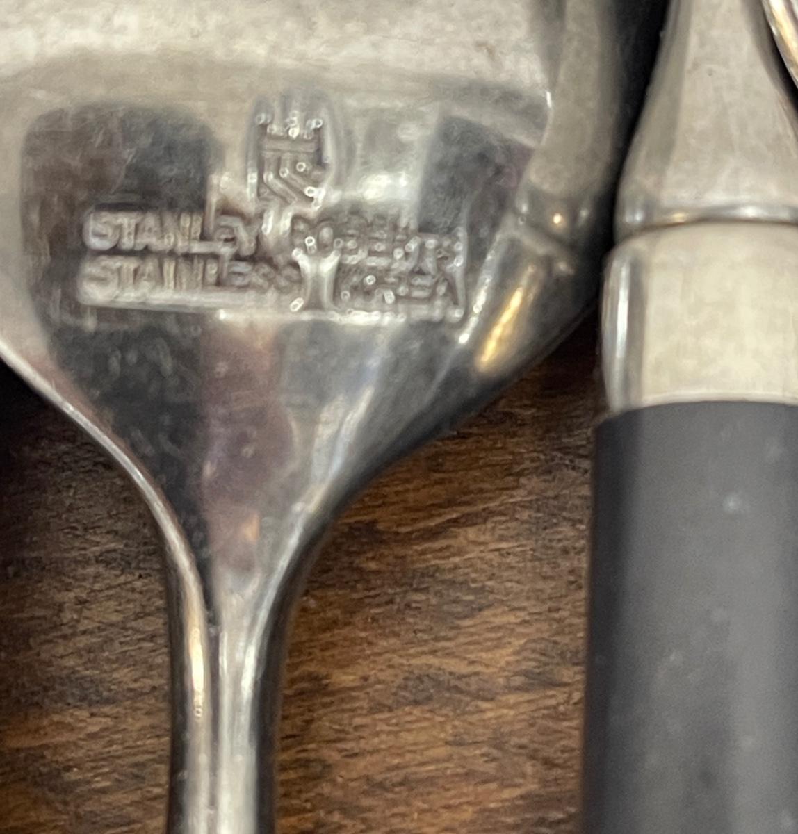 2 flatware sets = sky blue VF Mardi Gras and Black Stanley Roberts - a few missing pieces